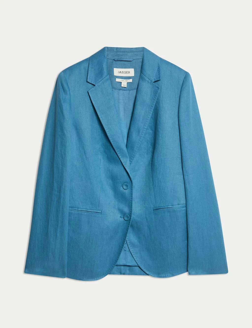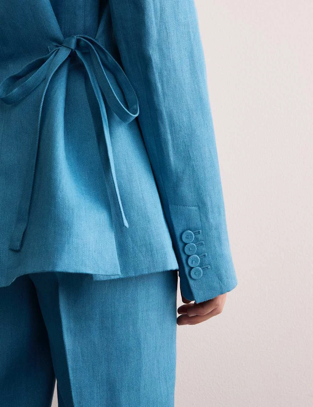 Back ties allow you to adjust the silhouette of this pure linen blazer by Jaeger. It’s cut with a relaxed straight fit through the body, and loose sleeves. Two covered buttons at the single-breasted front ensure a tonal look. Complete your ensemble with the matching waistcoat and trousers.