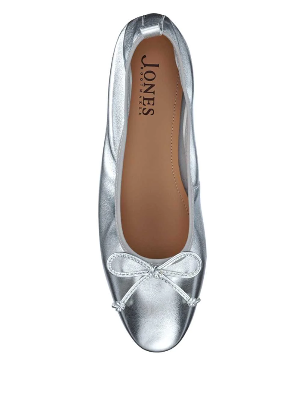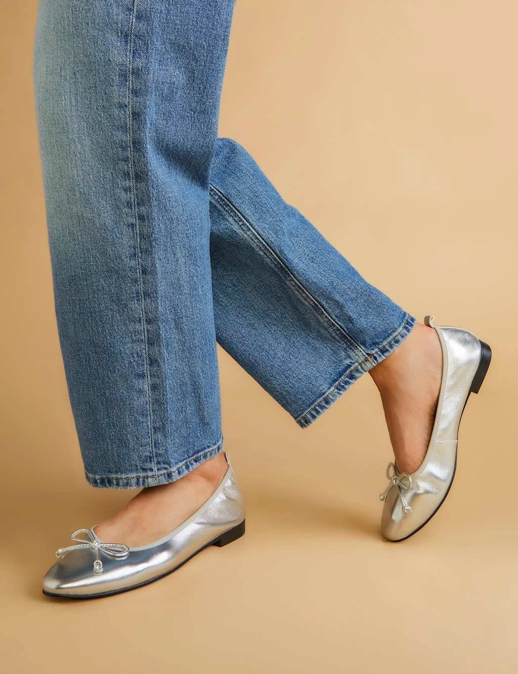 These metallic leather ballet pumps from Jones Bootmaker will add a statement touch to outfits. They’re designed in an easy slip-on style, with an elegant rounded toe and a comfy flat heel. A neat bow on the front adds a playful finishing touch.
