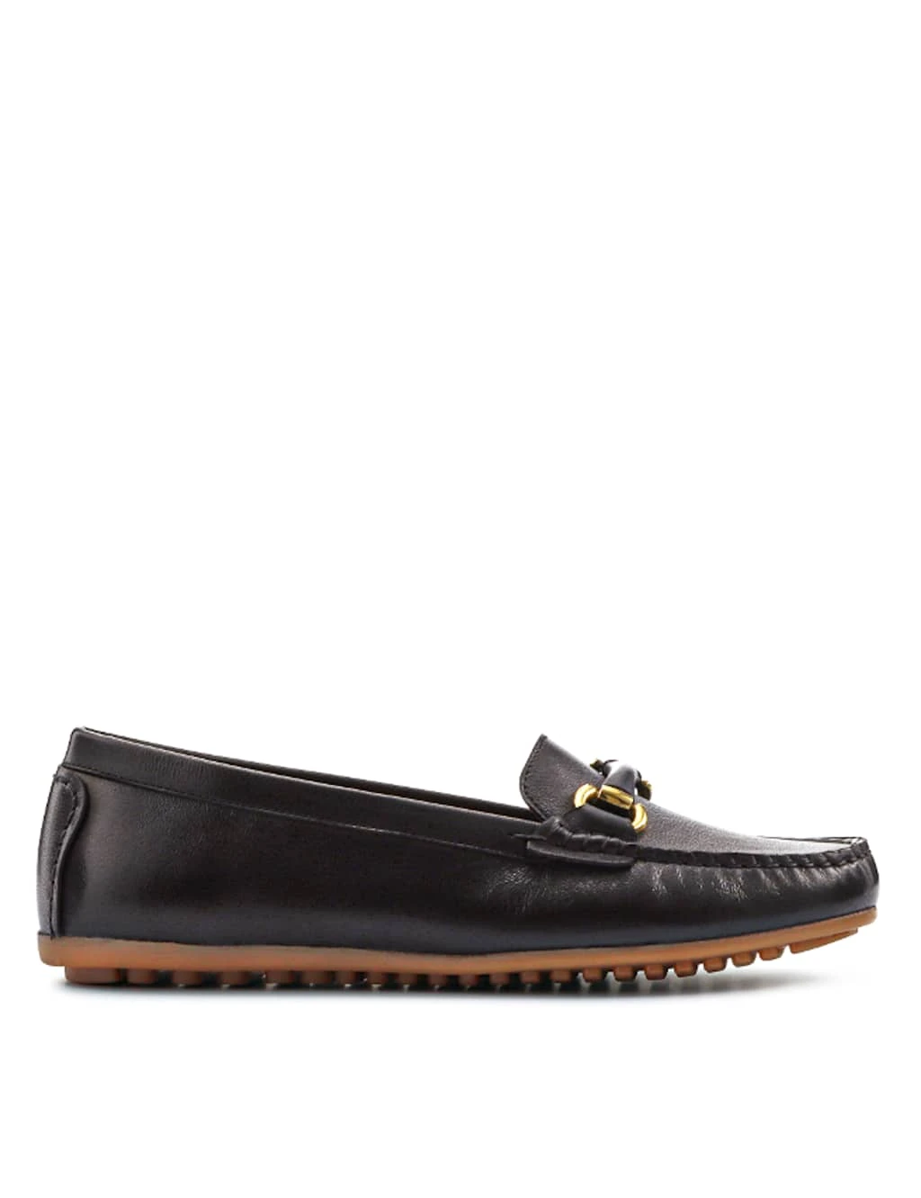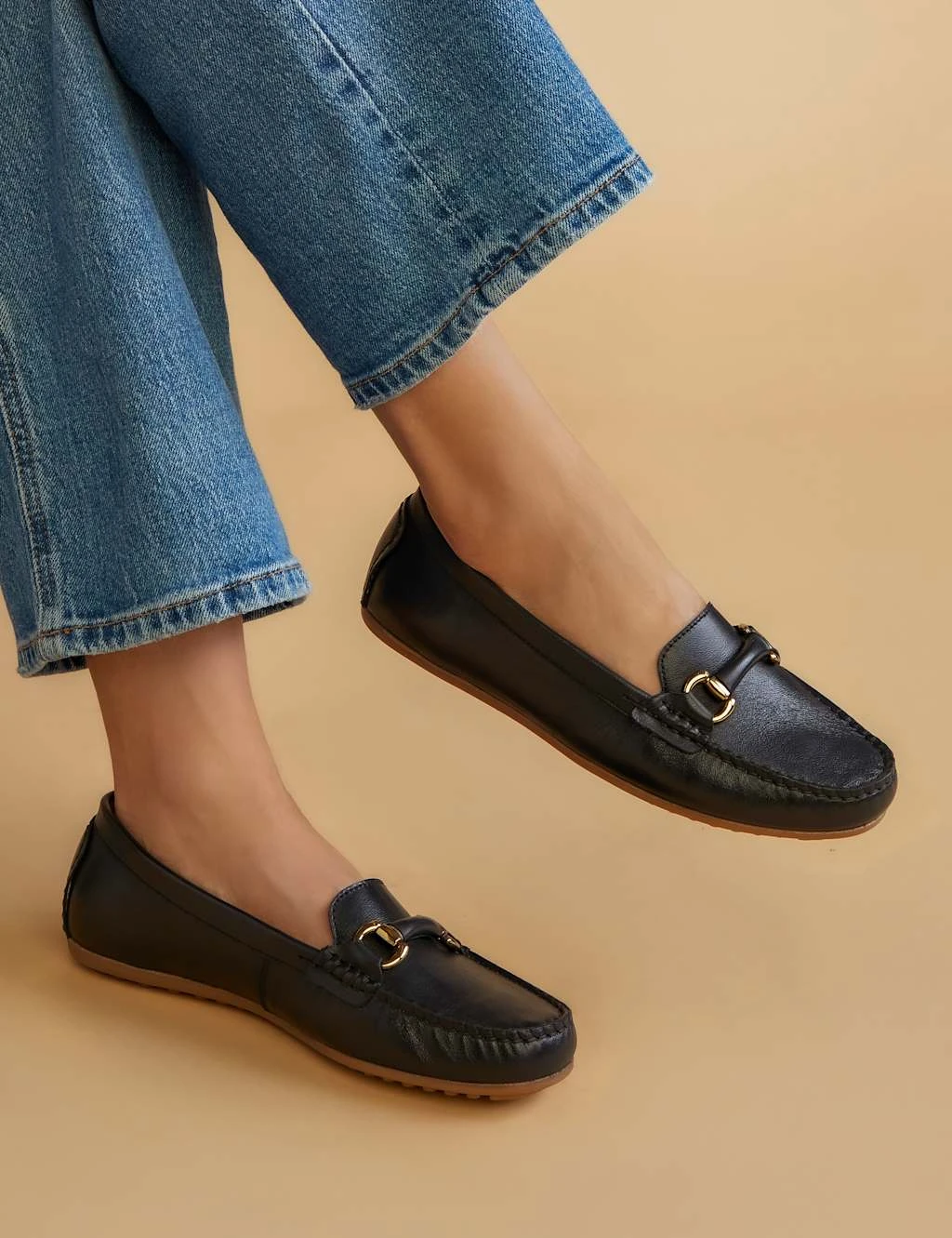 These leather loafers from Jones Bootmaker are an effortless choice for smart-casual dressing. The slip-on design features a comfy flat sole with plenty of grip to ensure a secure footing. Metallic detailing on the upper strap provides a polished finish.
