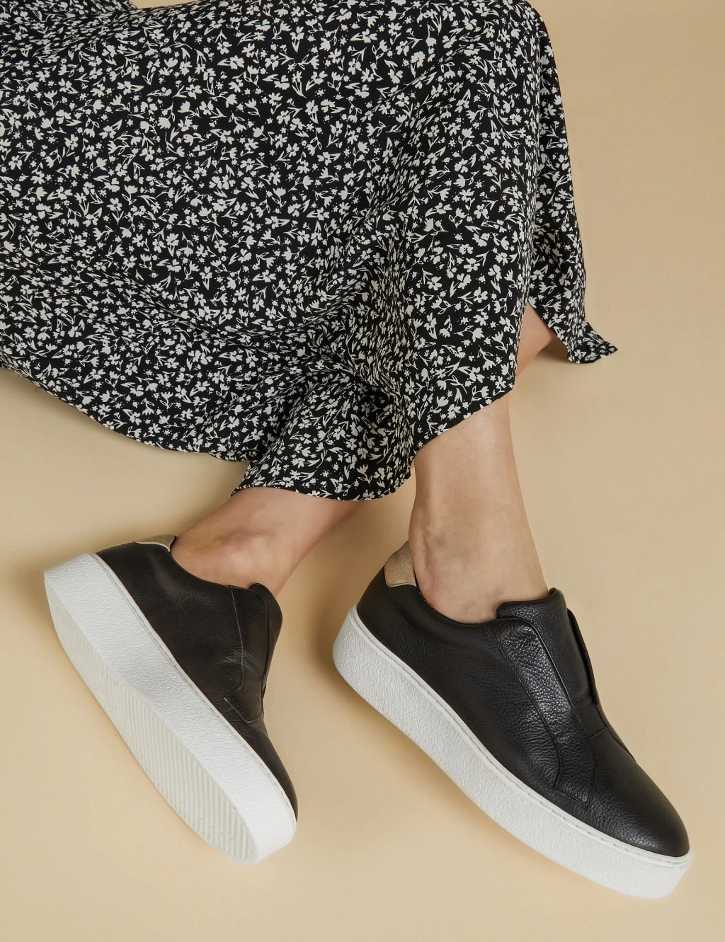 With their on-trend chunky sole, these leather trainers by Jones Bootmaker are a modern classic. They have a slip-on design for effortless wear, with elasticated panels at the front for a comfortable fit. A statement metallic panel at the heel adds a striking finishing touch.