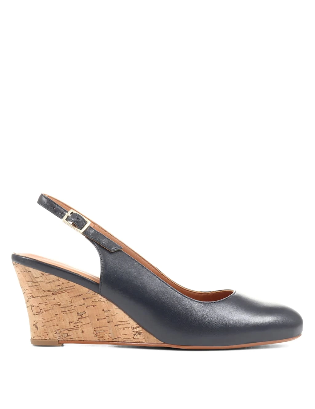 Channel elegant summer vibes in these leather slingback wedges from Jones Bootmaker. They’re made with an adjustable buckle strap and an elegant rounded toe. The lawn-friendly cork wedge offers an authentic touch, while a leather lining ensures comfortable wear.