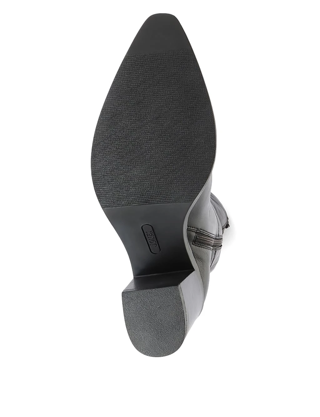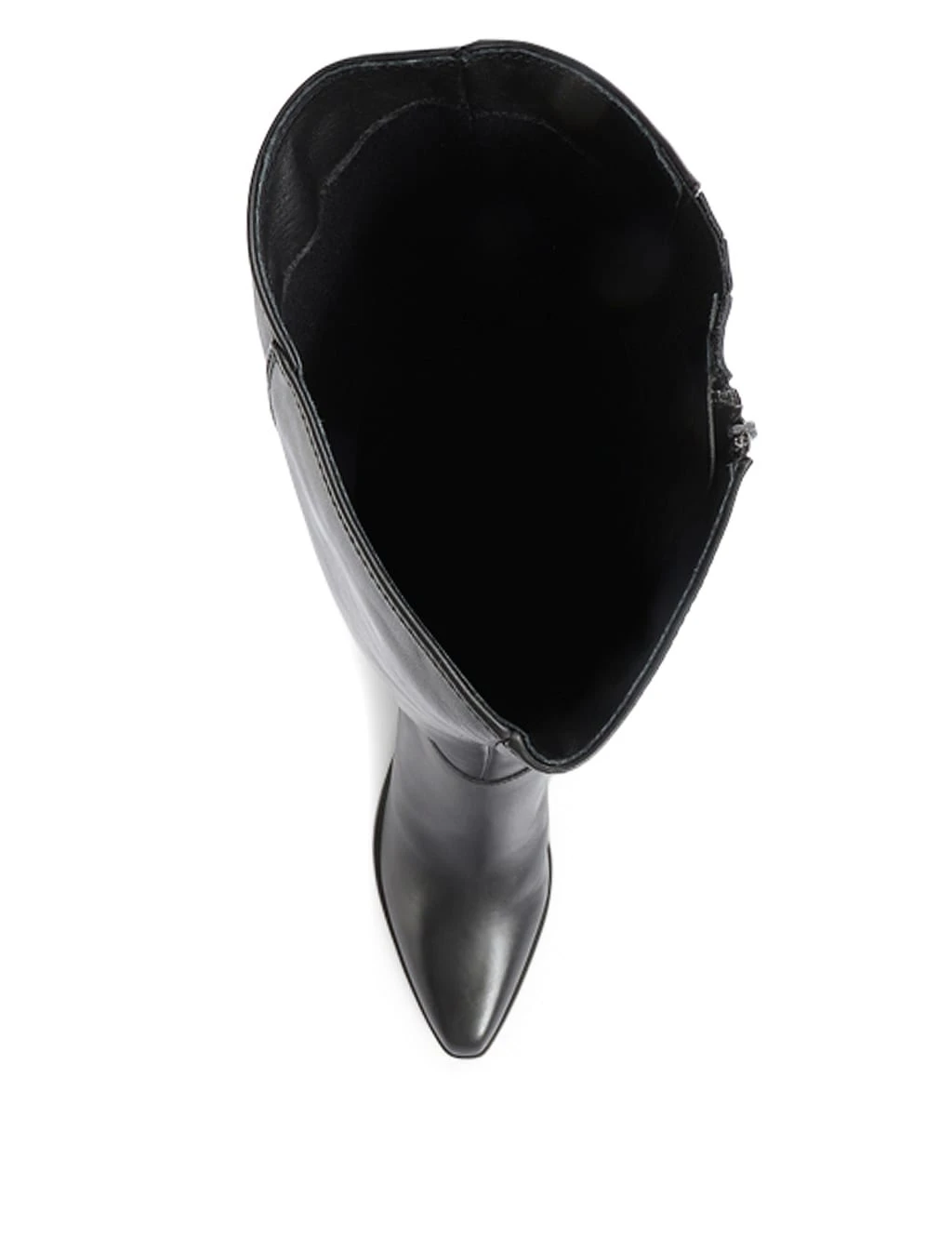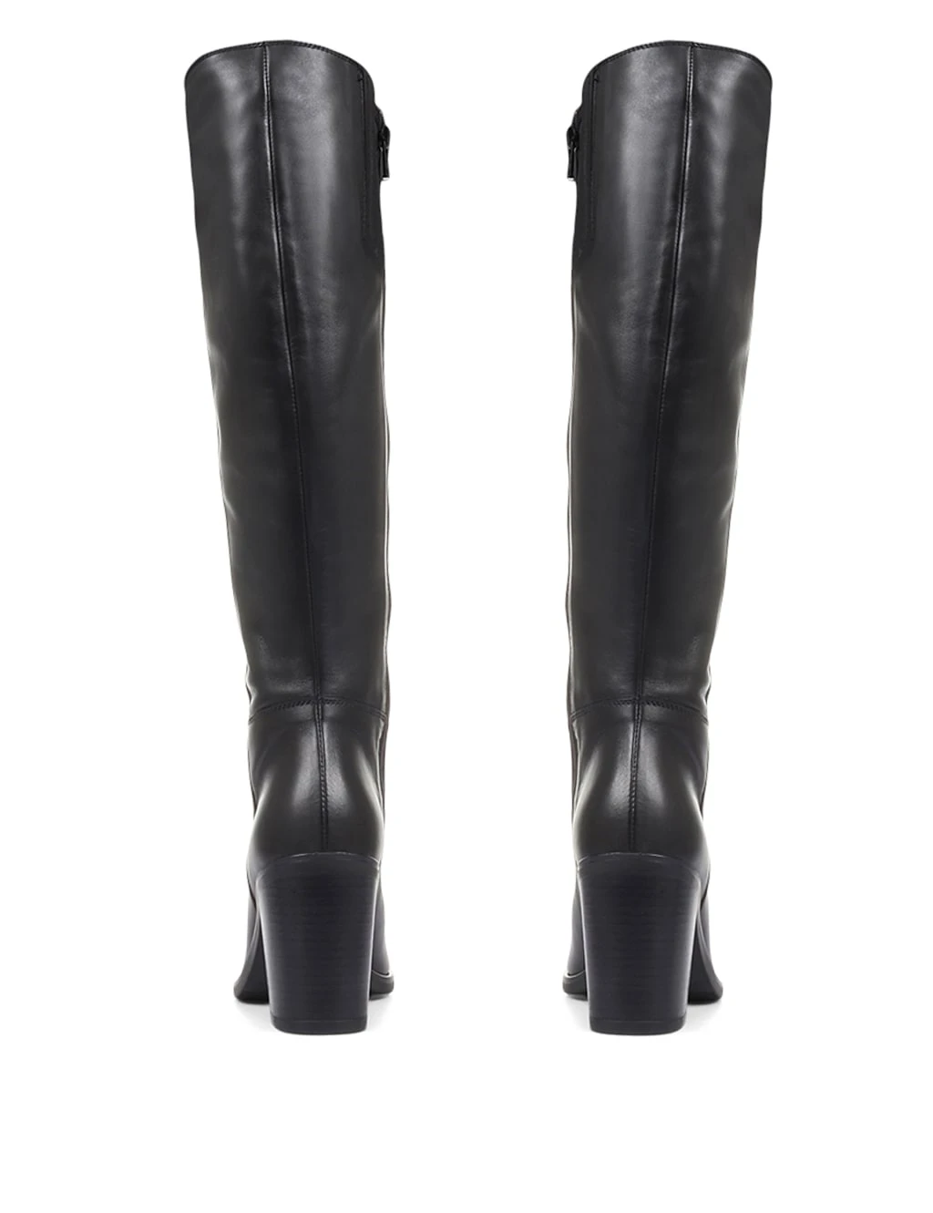 Add a sleek finishing touch to outfits with these leather knee-high boots by Jones Bootmaker. These statement pointed-toe shoes are designed in a regular fit with a mid-height block heel that not only looks good but is comfortable too. The smooth upper is finished with tonal stitch detailing and has a side zip fastening for effortless on and off.