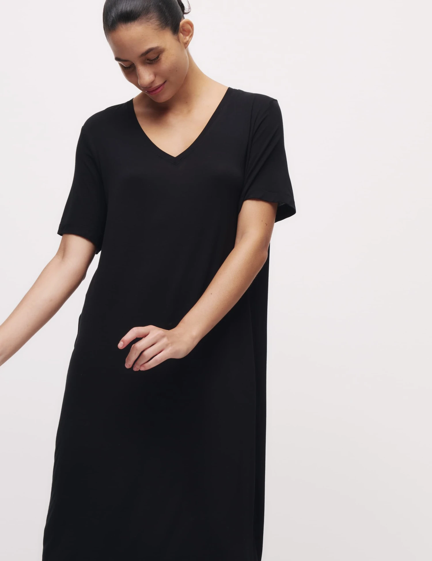 This nightdress from our Body™ range is made for comfort. The long style is designed in a regular fit from fabric with comfy added stretch. It has cool short sleeves and a flattering v-neck, plus a feminine scallop lace insert at the back.