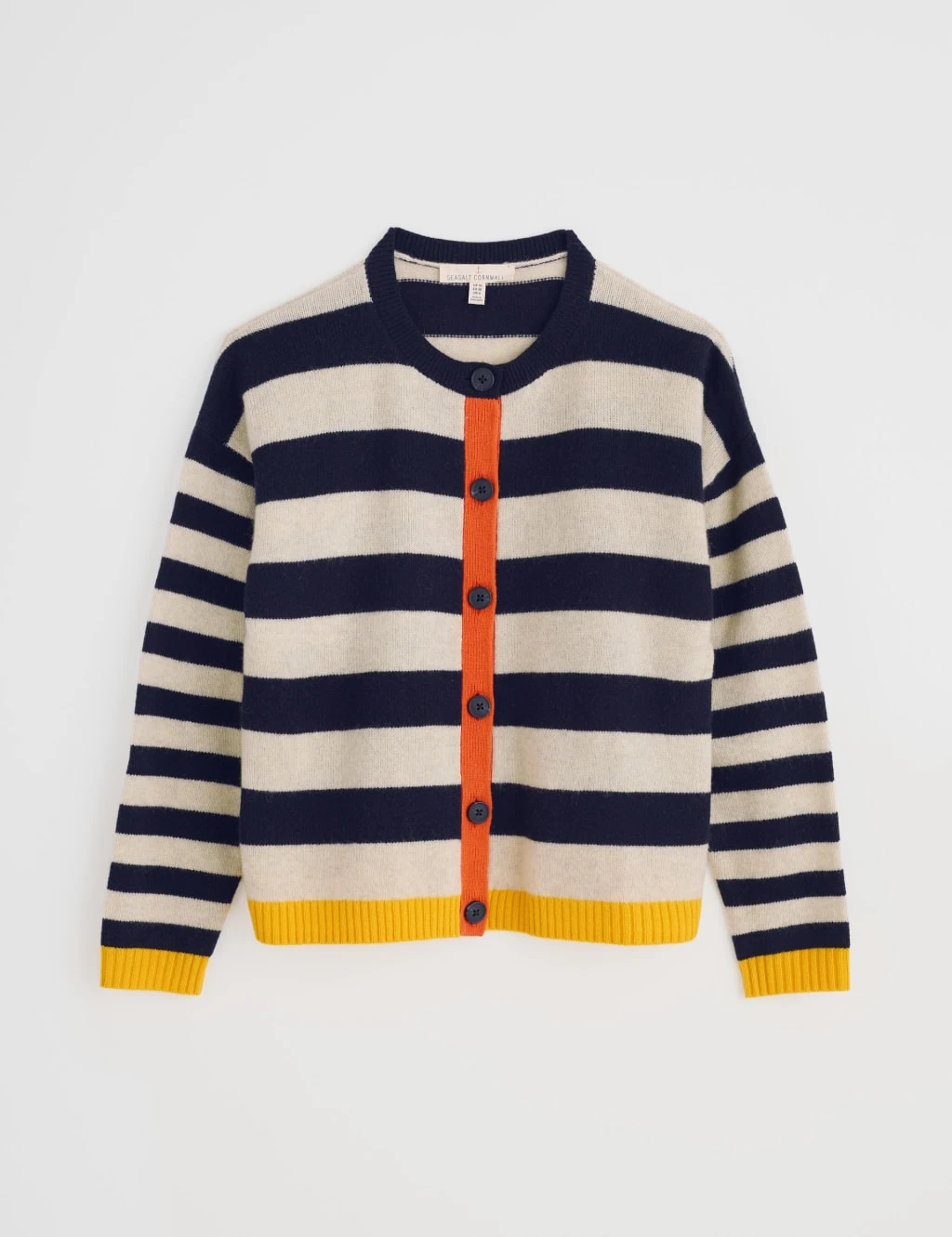 Bring extra warmth to your layers with this lambswool-rich cardigan by Seasalt Cornwall. It’s designed in a relaxed fit for a laidback feel, with a neat crew neckline and a timeless button-through front. The all-over striped pattern and contrasting trims create a statement look.