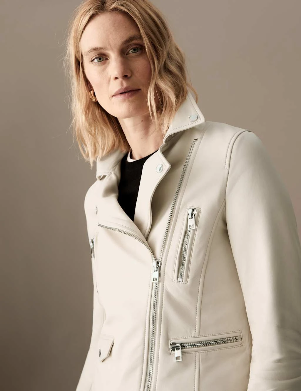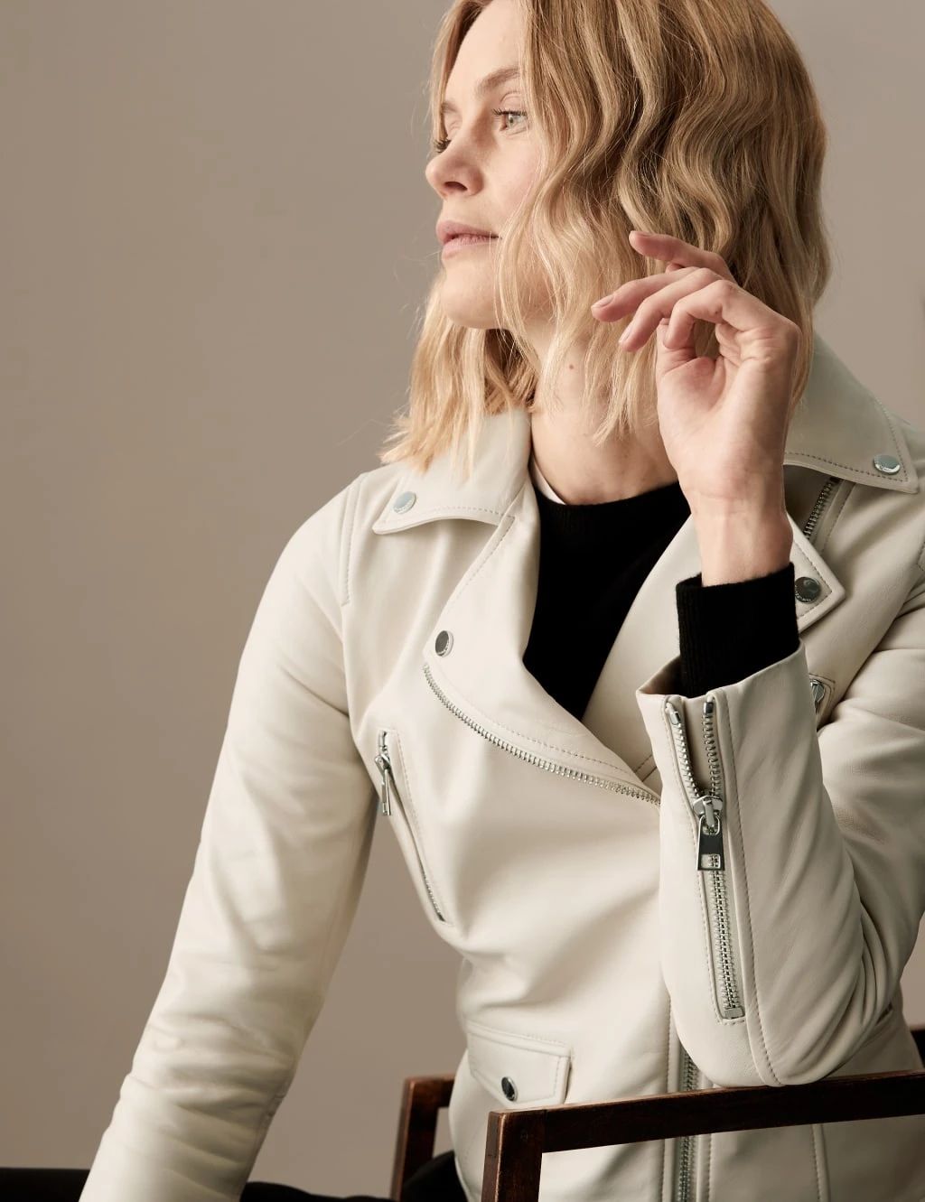 Unleash your inner biker with our leather Autograph jacket. Cut in a versatile regular fit for the ultimate day or night cover-up. Quilted on the inside. Asymmetric zip fastening. Designed with multiple pockets.