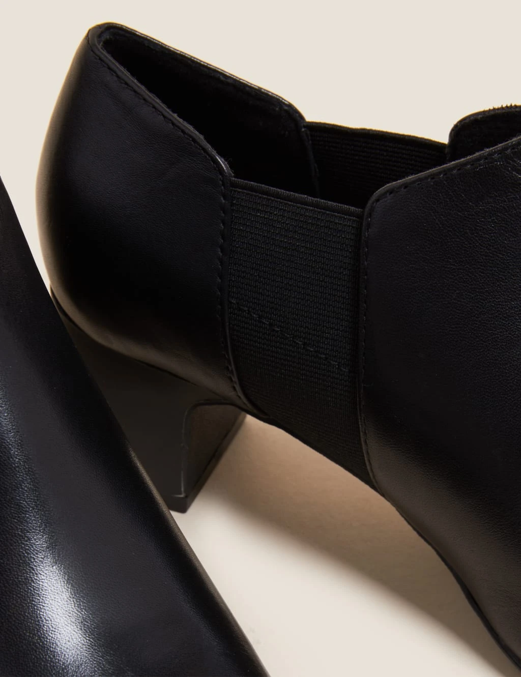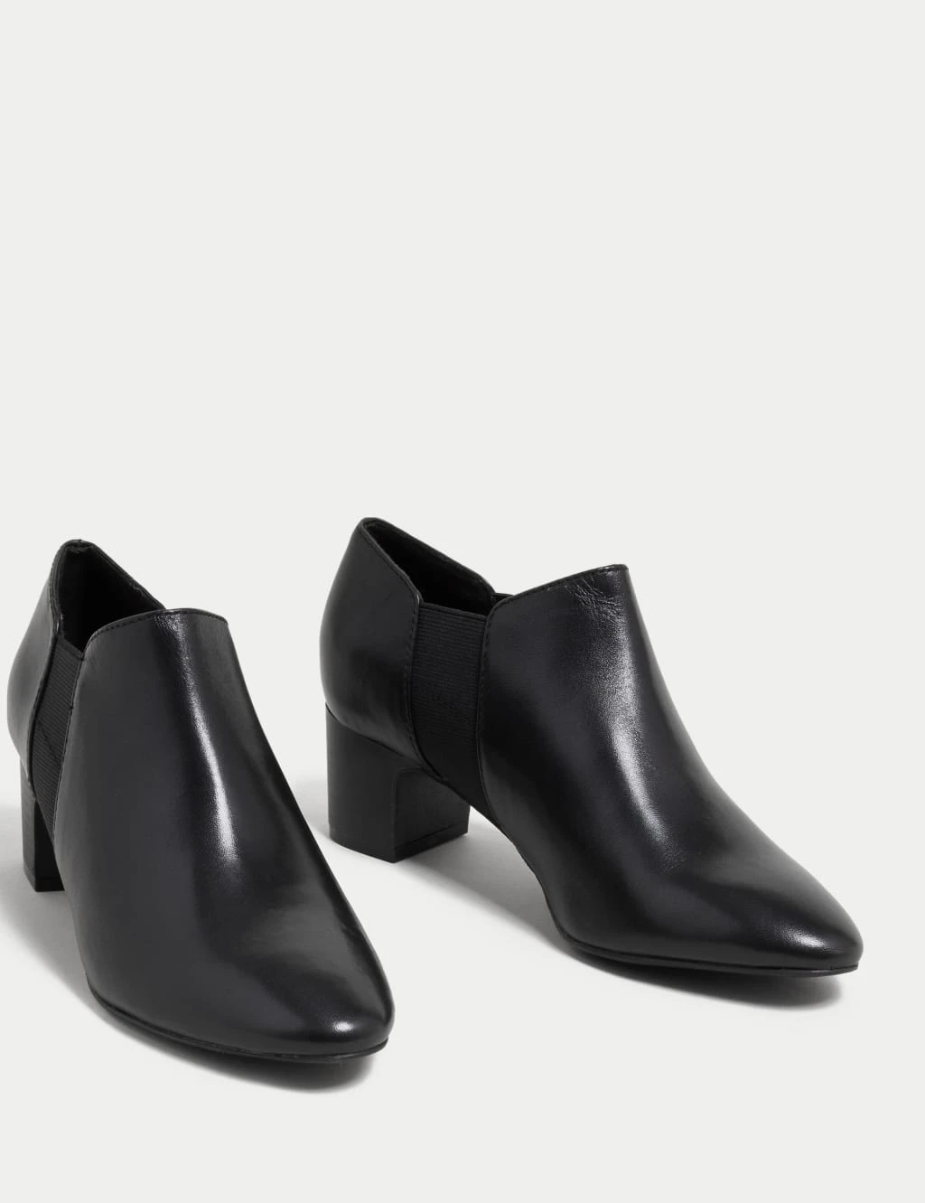 Step out in comfort with these elegant leather shoe boots. Stylish elasticated side panels make them easy to slip on and off. Low block heel. Our Insolia® technology brings stability to the ankle and reduces pressure on the ball of the foot, so they feel comfortable for longer, while antibacterial padding keeps feet feeling fresh. M&S Collection: easy-to-wear wardrobe staples that combine classic and contemporary styles.