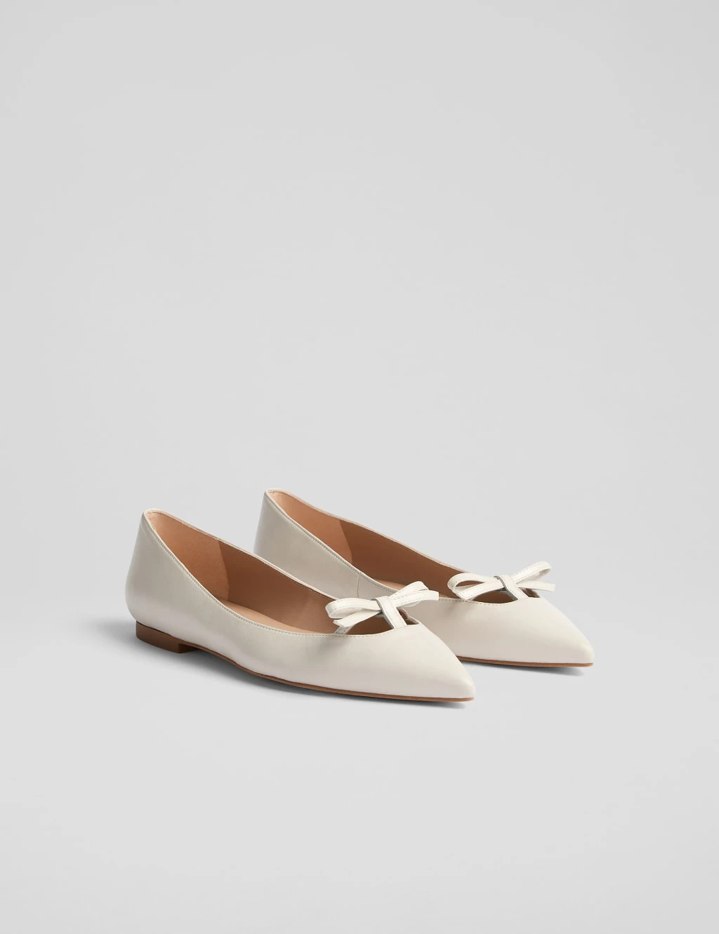 These leather pumps by LK Bennett bring a timeless style to your footwear collection. The slip-on design features a flat heel for all-day comfort. A neat bow on the pointed toe completes the classic look.