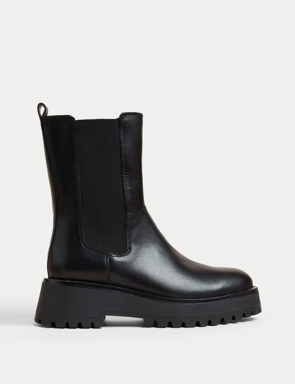 Put your best foot forward in these leather ankle boots. We’ve crafted this pull-on style with a high stretchy cuff for a sleek Chelsea look. Chunky flatform heels offer easy wear and Insolia Flex® technology supports your feet for day-long comfort. Antibacterial padding provides that fresh feeling. M&S Collection: easy-to-wear wardrobe staples that combine classic and contemporary styles.