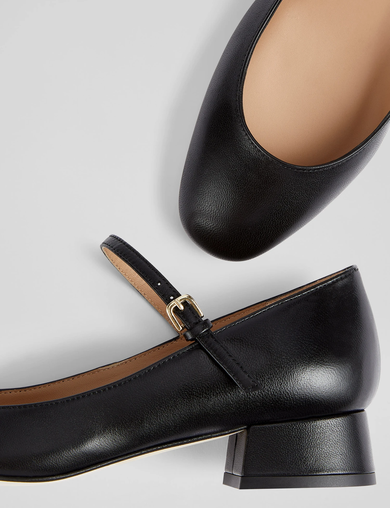 Add a dash of dazzle to your ensemble with these metallic leather pumps by LK Bennett. They’re made in a timeless Mary Jane style, with a single buckled strap across the foot. A low block heel adds extra elegance to the design, while a leather lining offers breathability.