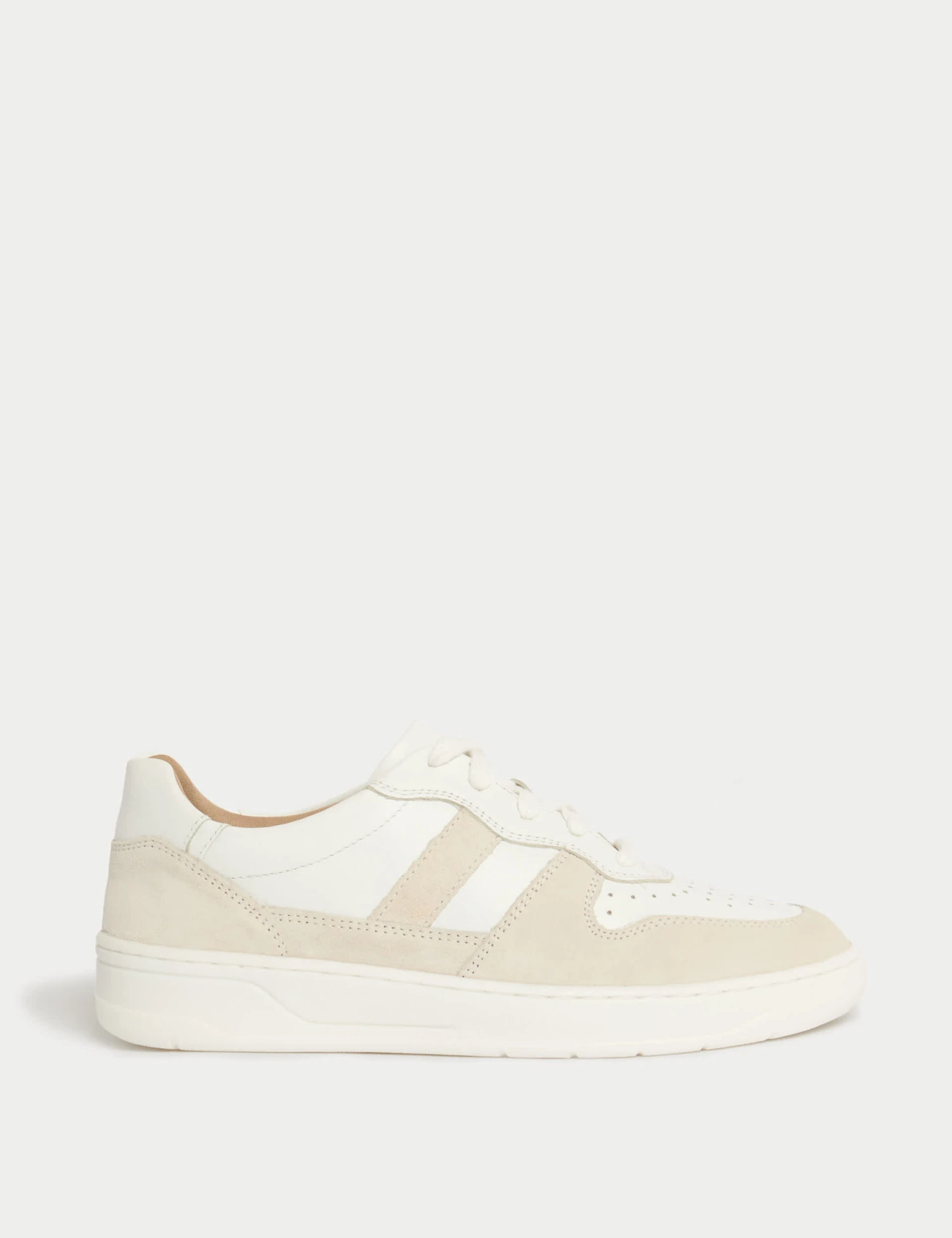 These leather trainers are a versatile addition to your footwear collection. They’re designed with a flat heel and lace-up fastening. A contrasting side stripe adds a pop of colour. M&S Collection: easy-to-wear wardrobe staples that combine classic and contemporary styles.