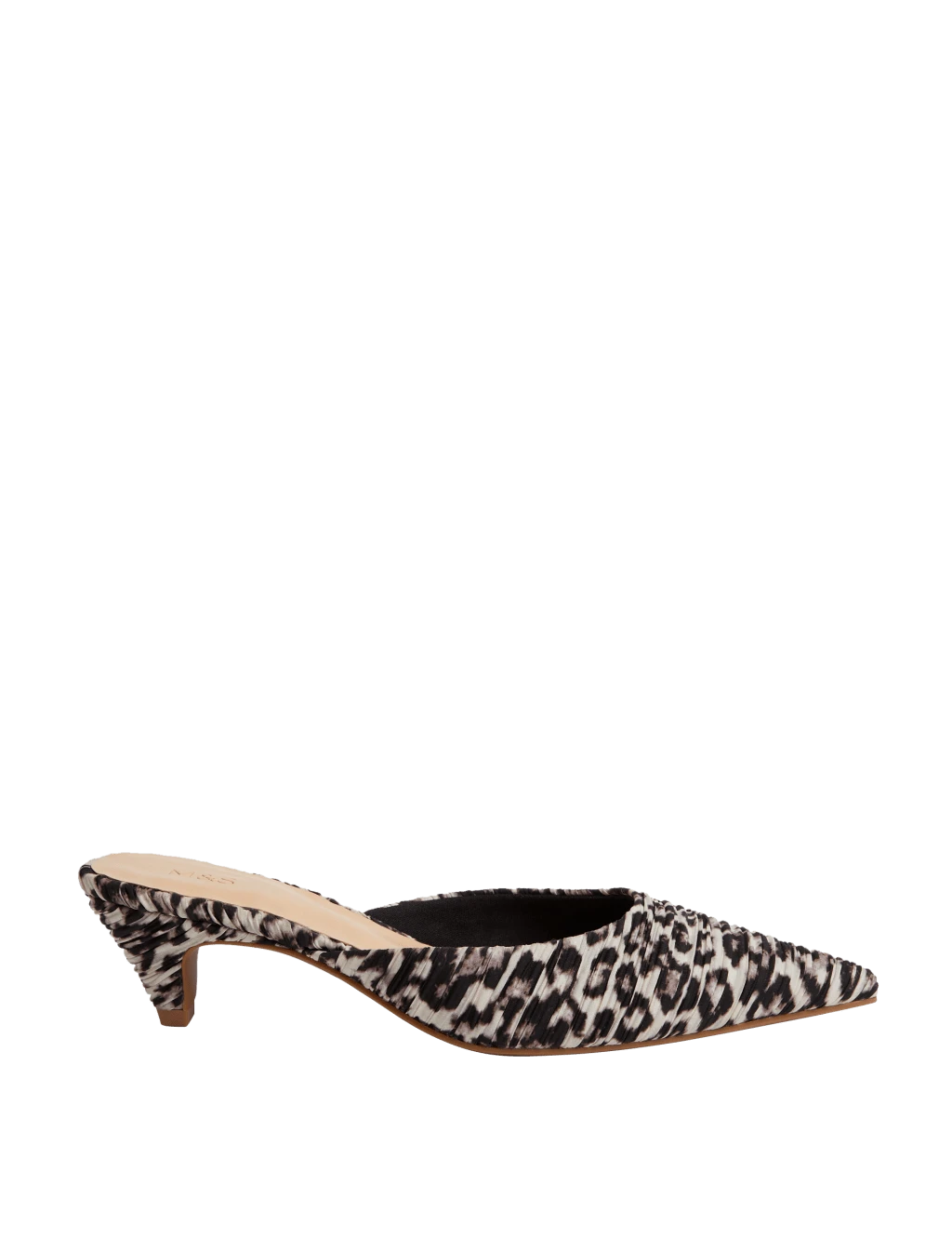 Add a pop of print to your outfit with these striking leopard print mules. Slip-on design with a mid-height kitten heel. Square toe and v-shaped cut-out offer a contemporary look. Insolia® technology redistributes weight from the ball of your foot to make walking in heels more comfortable. M&S Collection: easy-to-wear wardrobe staples that combine classic and contemporary styles.
