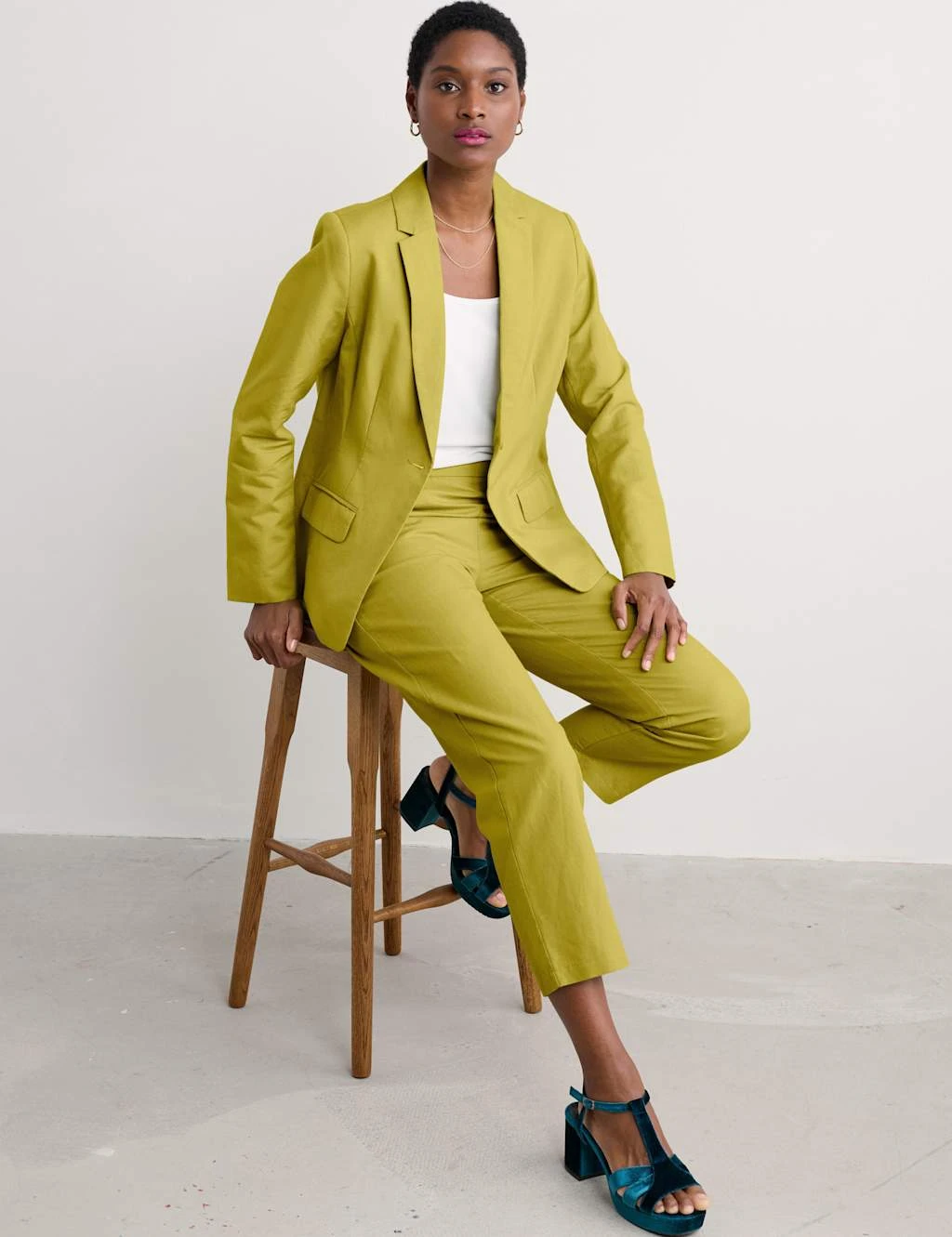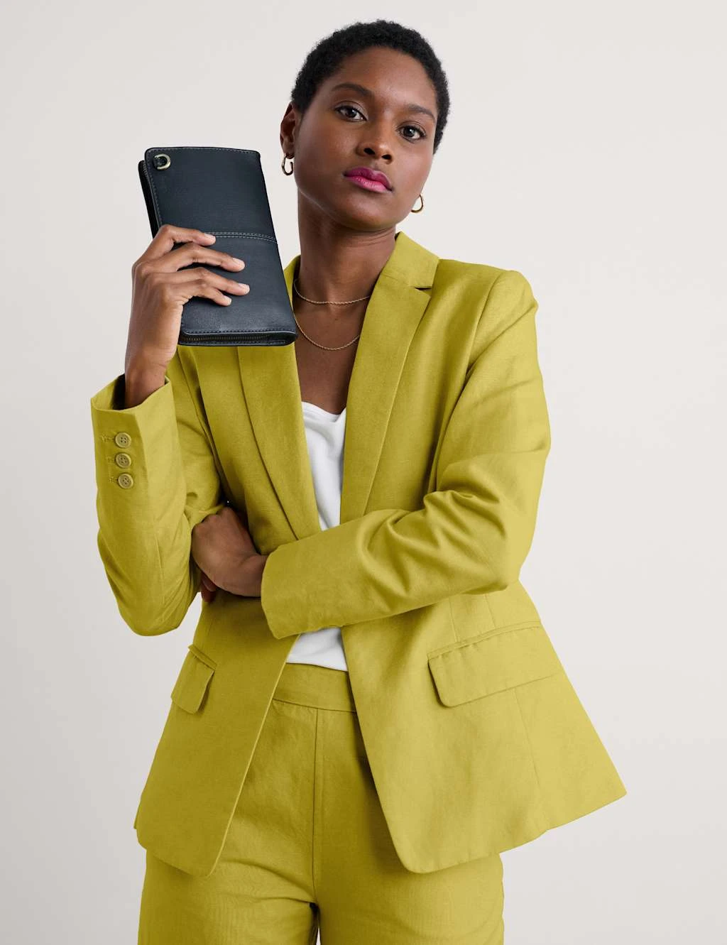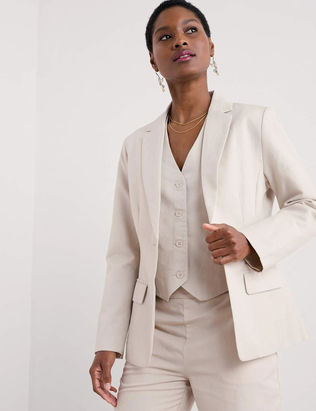 This Seasalt Cornwall blazer is crafted from a linen and cotton blend fabric, making it a lightweight choice for smart occasions. It’s cut to a tailored fit, with a single-breasted silhouette and a button fastening at the waist. Notched lapels and three-button detailing on the cuffs add timeless touches. This piece is complete with two flap pockets for your essentials.