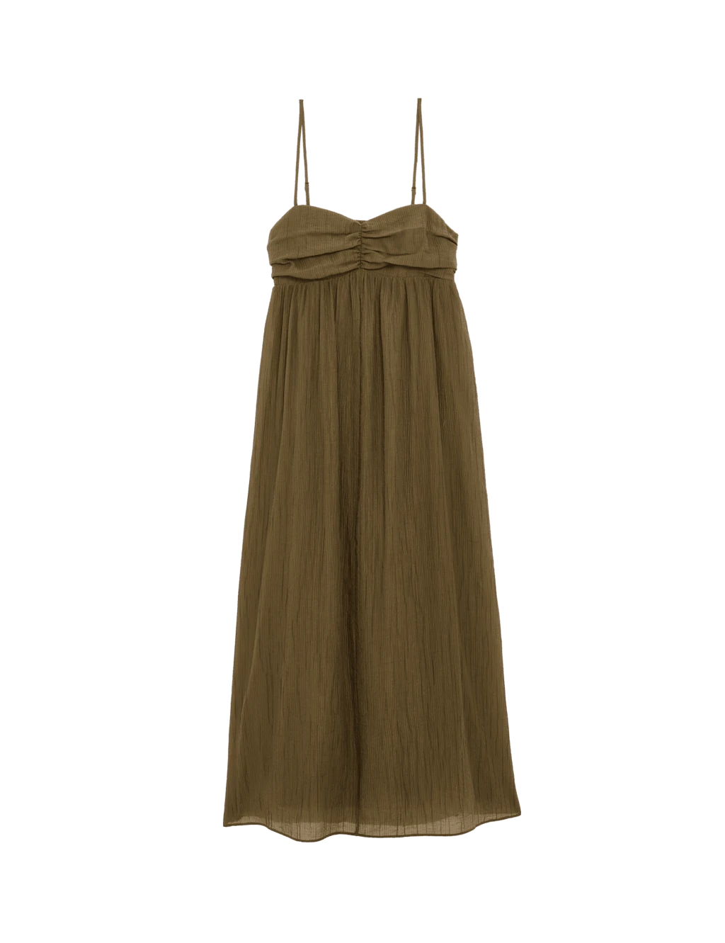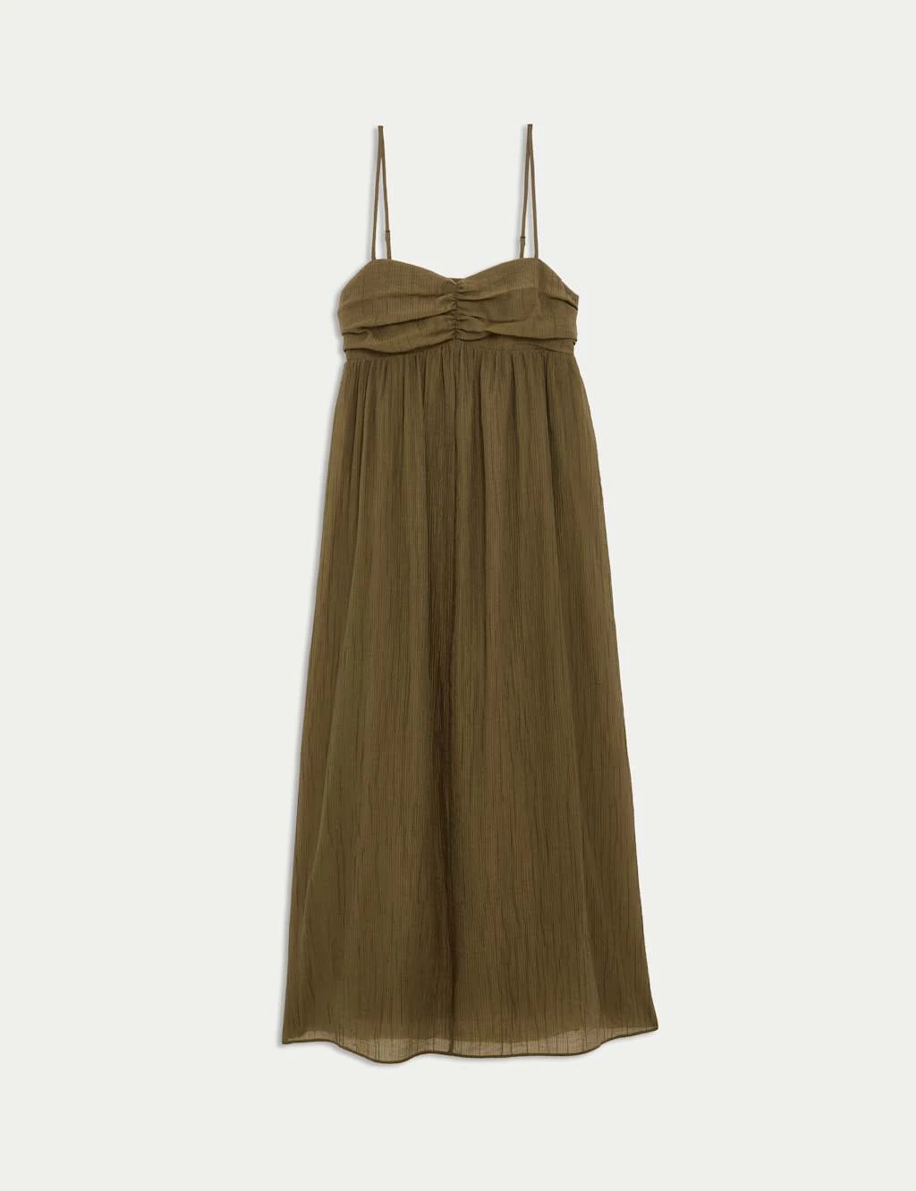 Cut an elegant figure in this effortlessly feminine midaxi dress. It’s crafted from soft and drapey lyocell-rich fabric and features slim adjustable straps that frame the flattering sweetheart neckline and cupped bust. This throw-on-and-go piece is finished with subtle gathers and a textured finish for a stylish look. M&S Collection: easy-to-wear wardrobe staples that combine classic and contemporary styles.