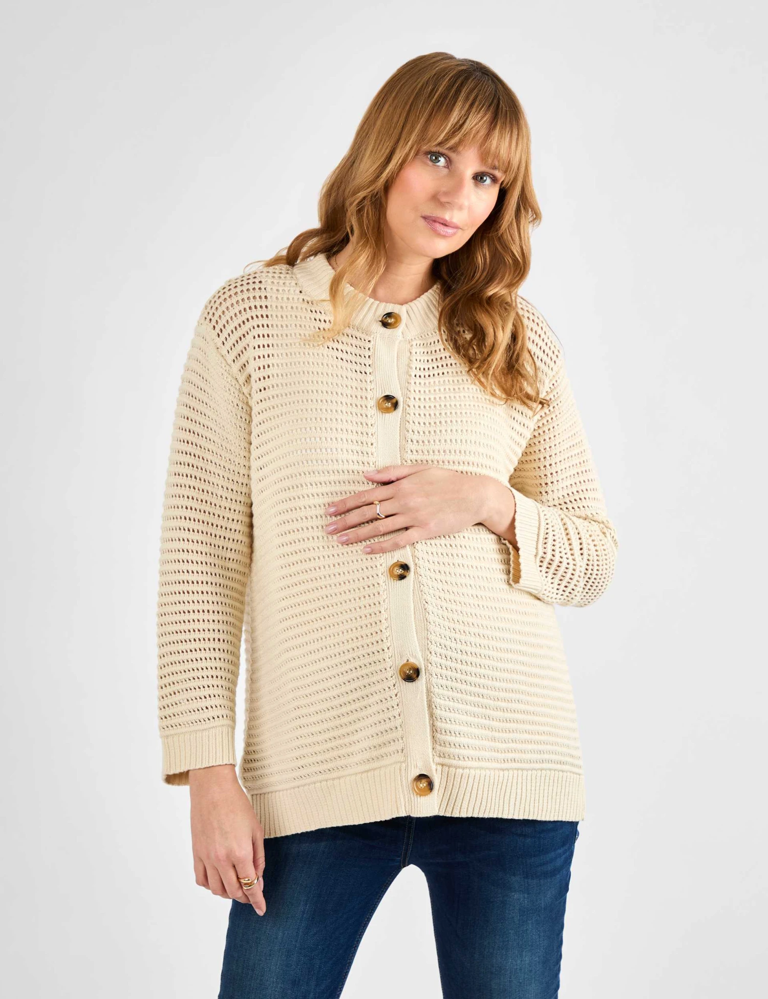 This cotton-blend cardigan from JoJo Maman Bébé is a breathable layer for the in-between seasons. It’s made in a regular fit, with a neat crew neckline and a button-through front. Long sleeves and ribbed trims provide a cosy feel. A pointelle knit pattern gives it a delicate look.