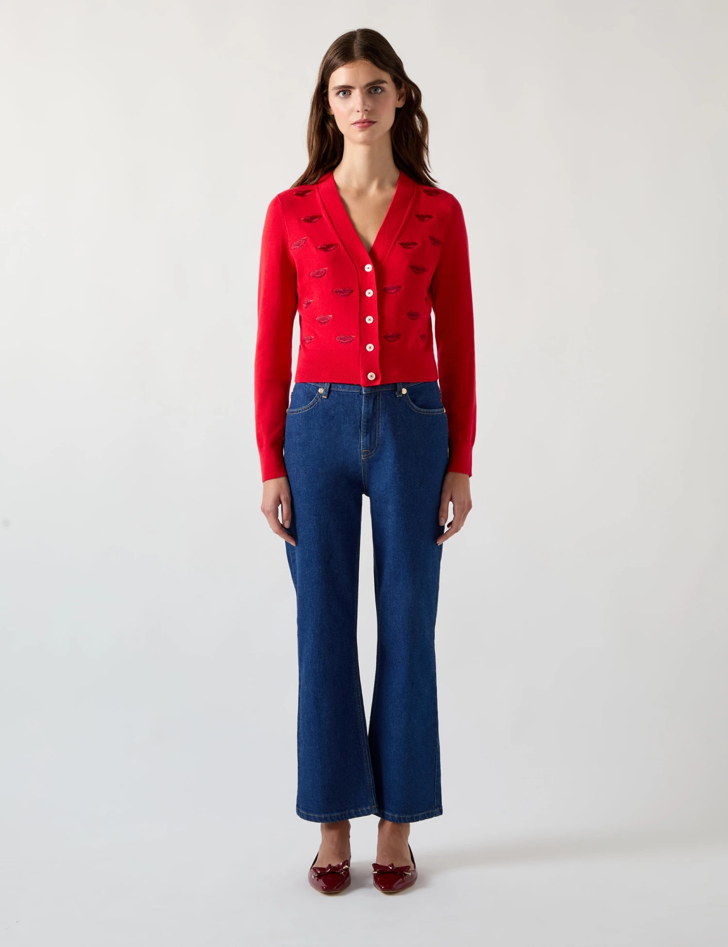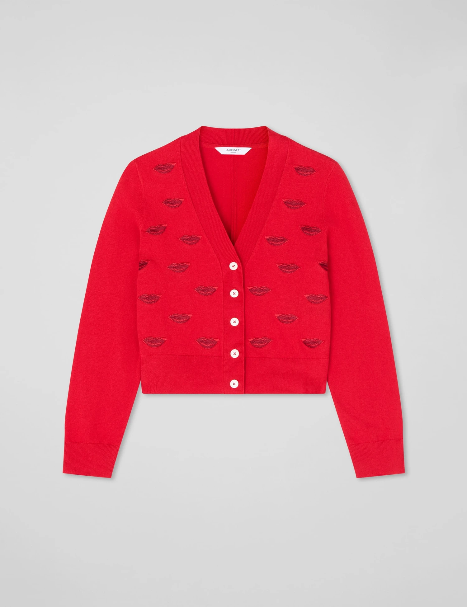 Bring a playful touch to your layering with this LK Bennett cardigan, knitted from a soft merino wool blend. It’s made in a regular fit and features a ribbed v-neckline and placket, punctuated by contrasting buttons. An embroidered lips design on the front adds fun detail to this long-sleeved style.