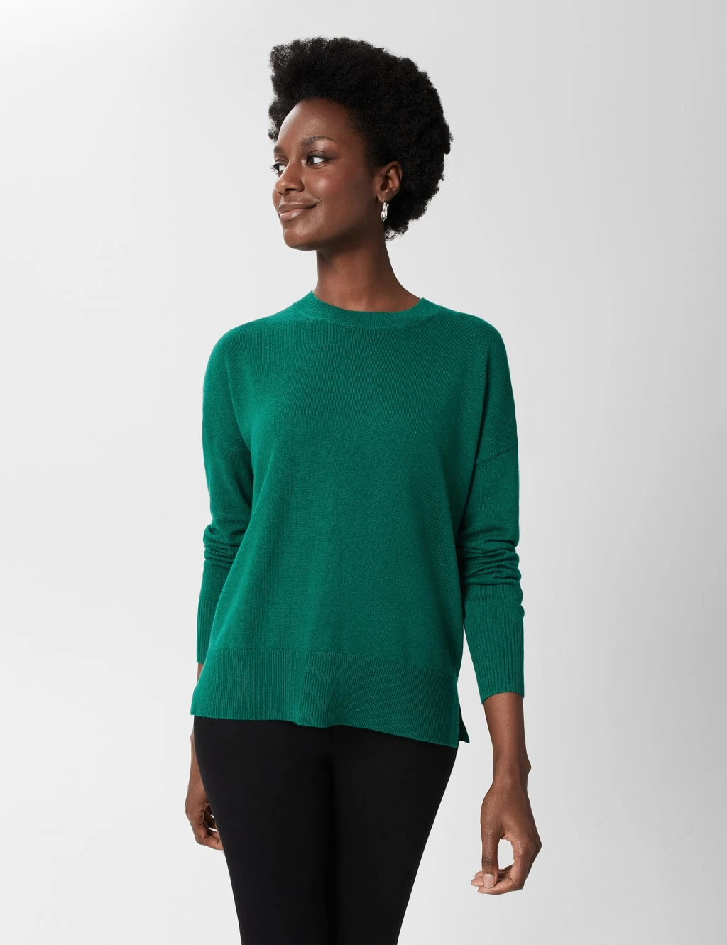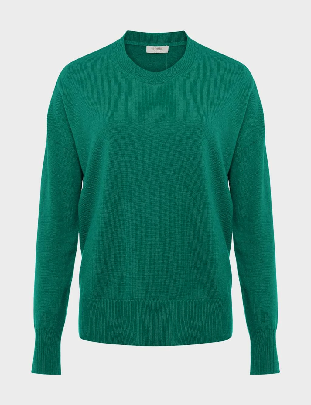With its merino wool-blend yarn, this Hobbs jumper brings a luxe touch to your cool weather essentials. The crew neck style has a regular fit, with dropped shoulders for a relaxed look. Its hem and long sleeves are finished with ribbed trims, creating a snug feel.