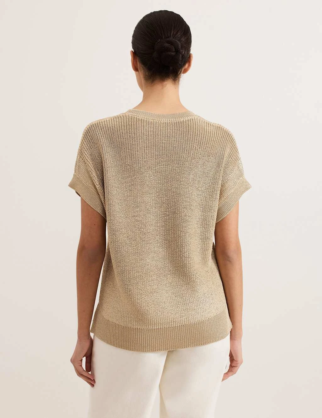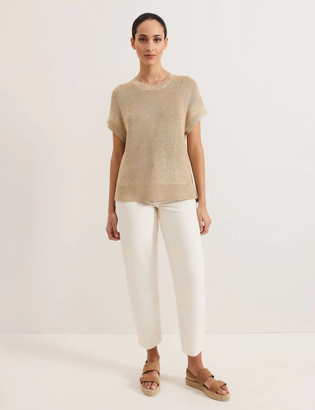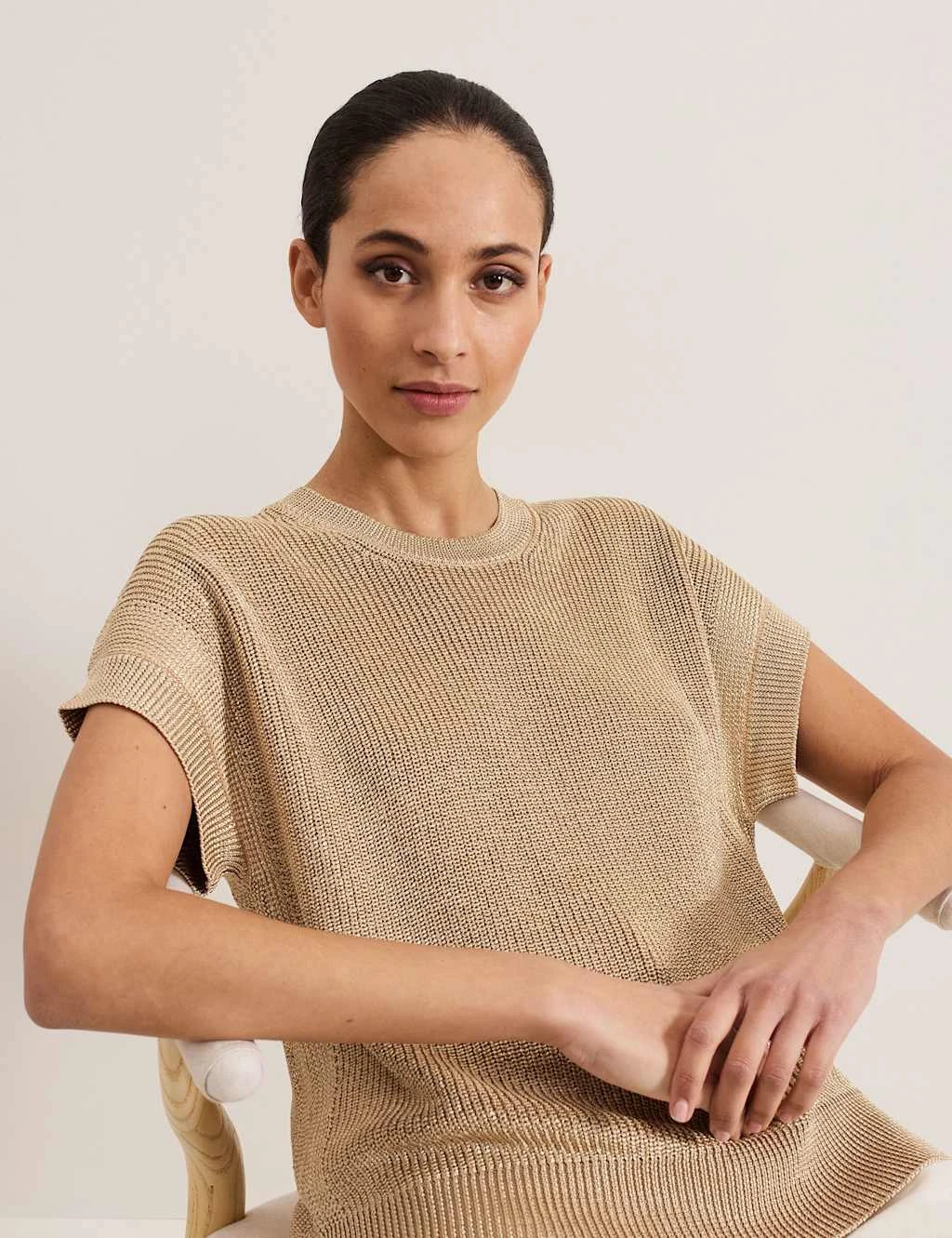 Add a little luxury to your knitwear collection with this metallic jumper from Phase Eight. It’s designed in an easy regular fit with an elegant grown-on short-sleeve silhouette. The ribbed round neck and side splits add to the sophisticated look. This piece is complete with a textured finish for a premium feel.