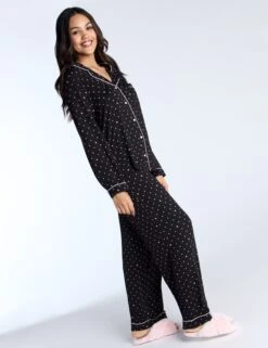This Boux Avenue pyjama set is made from soft modal-rich fabric for a wonderfully smooth feel. Designed in an easy regular fit, it includes a short-sleeved t-shirt with a feminine lace-trim cuffs. The matching shorts have a comfortable elasticated waist with an adjustable drawstring for the perfect fit, and a matching lace-trim hem.