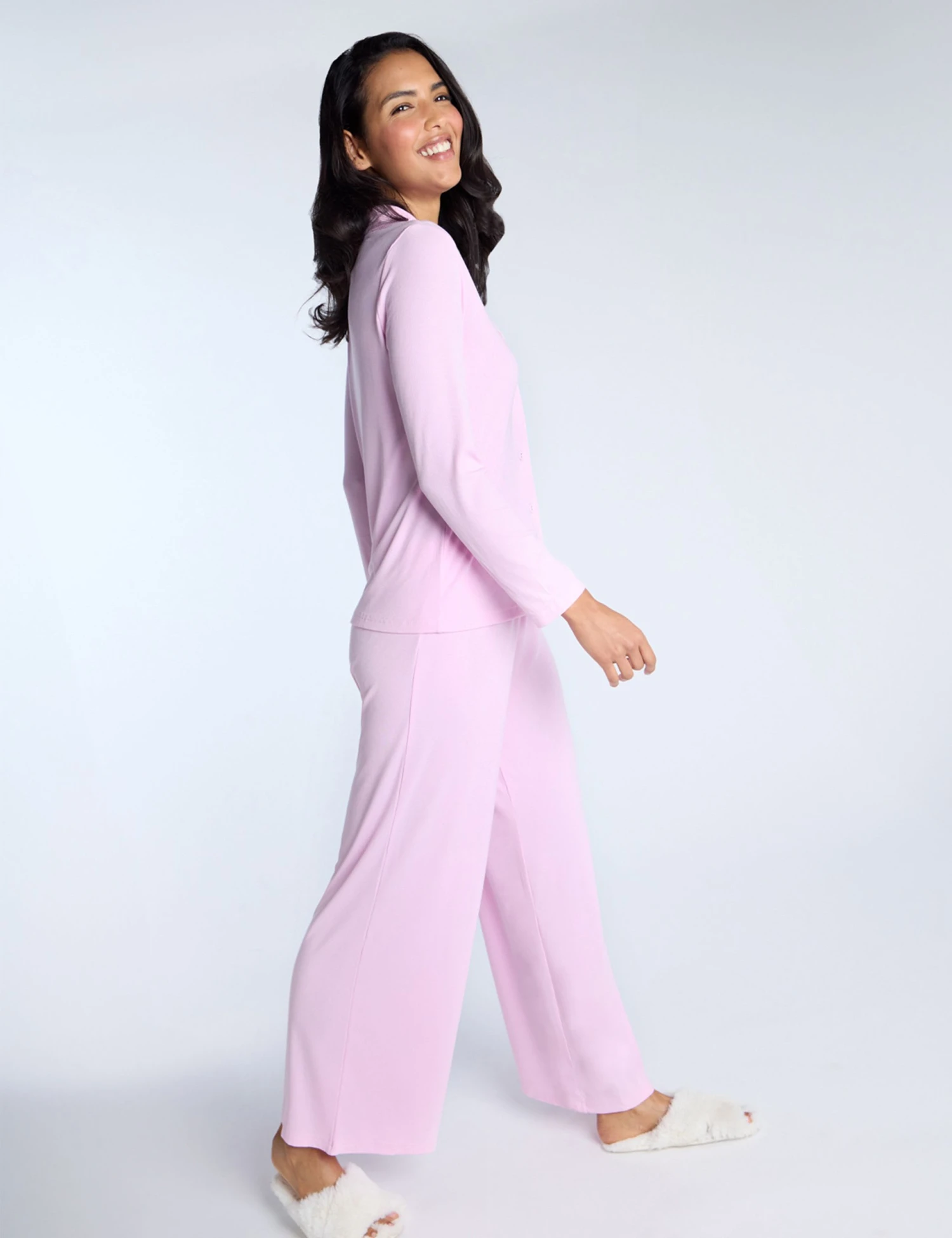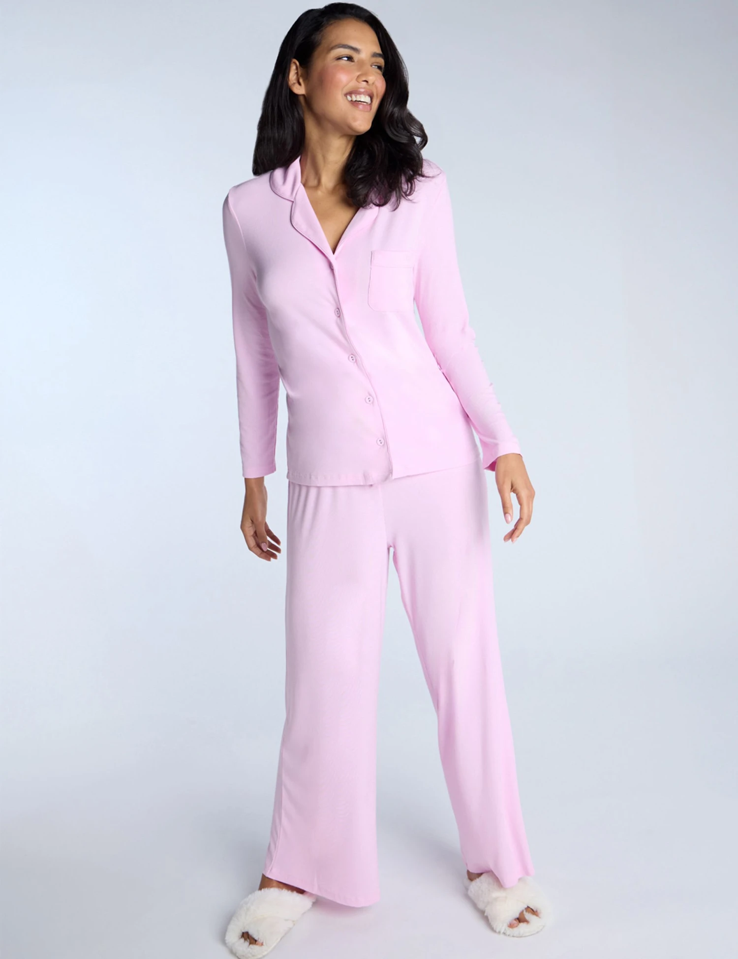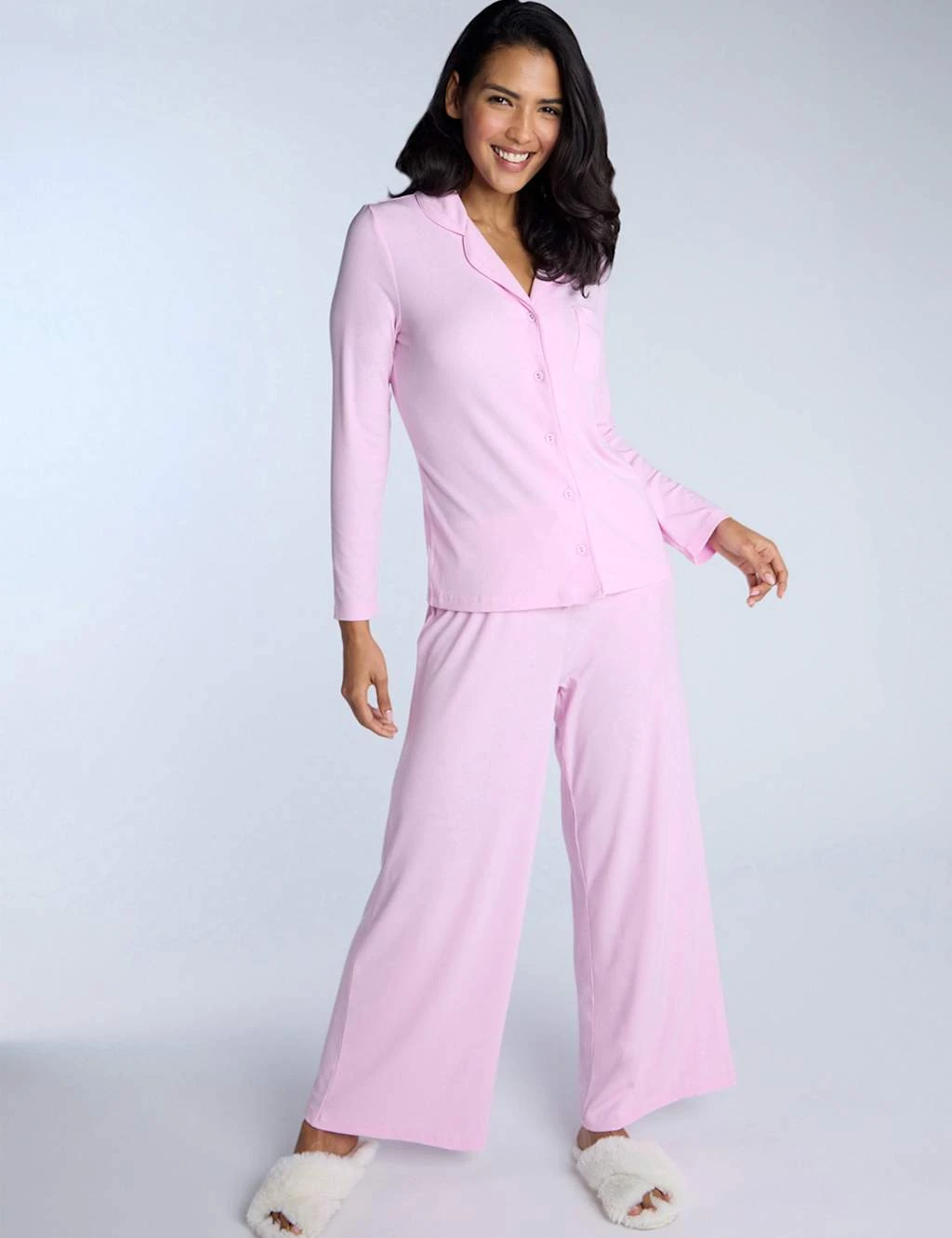 Crafted from super-soft ribbed modal-rich fabric, these pyjama bottoms from Boux Avenue are a luxurious choice for lounging. The wide-leg trousers have a comfortable elasticated waist, complete with a self-tie for an adjustable fit. Subtle branded embroidery adds a signature finish.