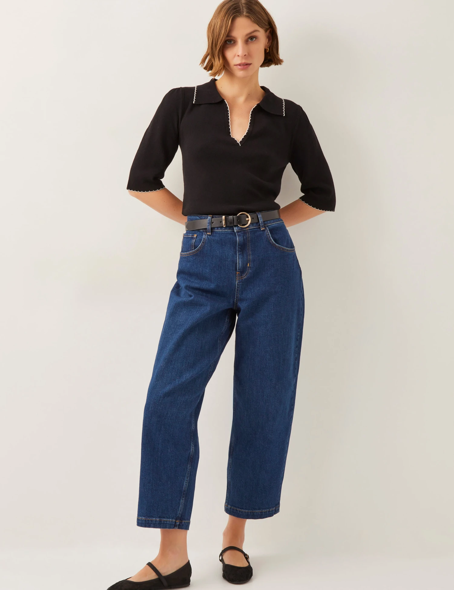 This short-sleeved jumper from Monsoon is a nostalgic piece for day or evening. It’s made in a regular fit, with an elegant collared v-neck. The elbow-length sleeves are slightly gathered at the shoulders for a touch of volume, while contrast trims add refined accents.