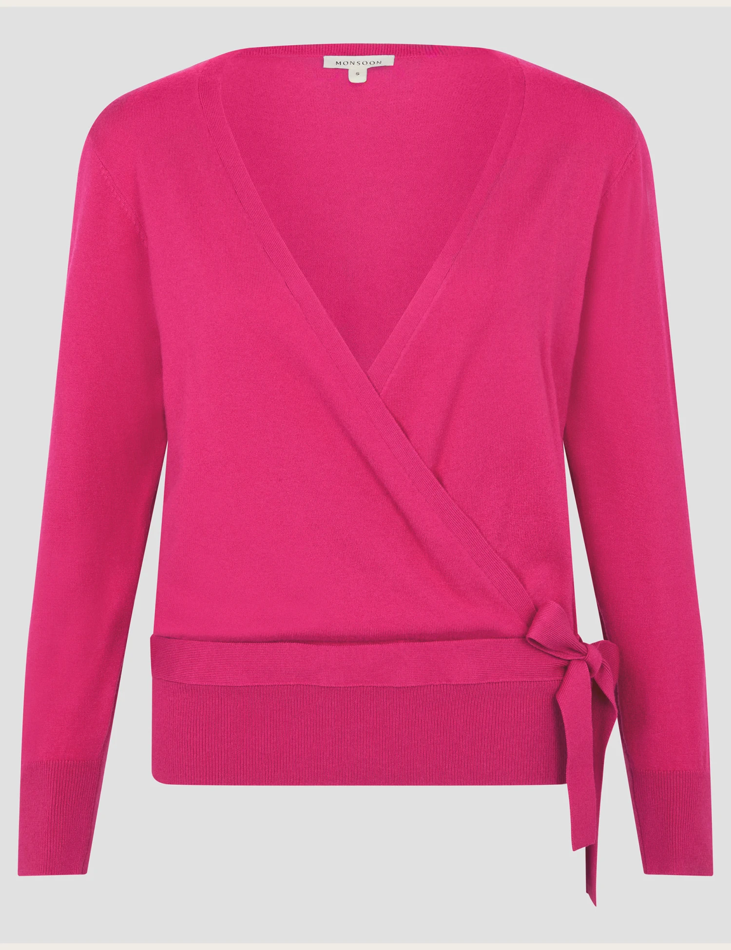 This Monsoon V-neck cardigan is crafted from soft yarn for a cosy feel on chilly days. It’s designed with a flattering wrap shape with a self-tie belt for a flexible fit. Ribbed trims add a neat finish.