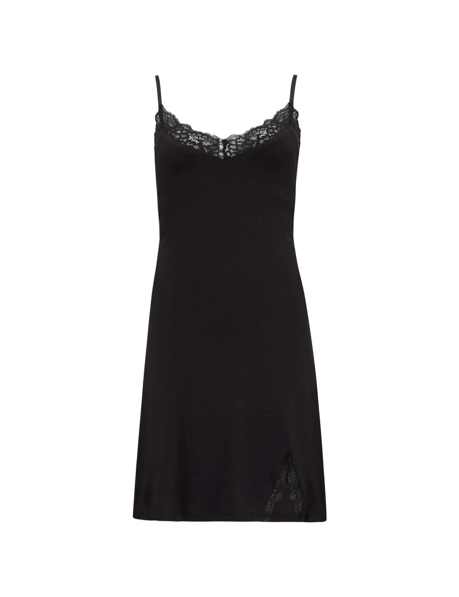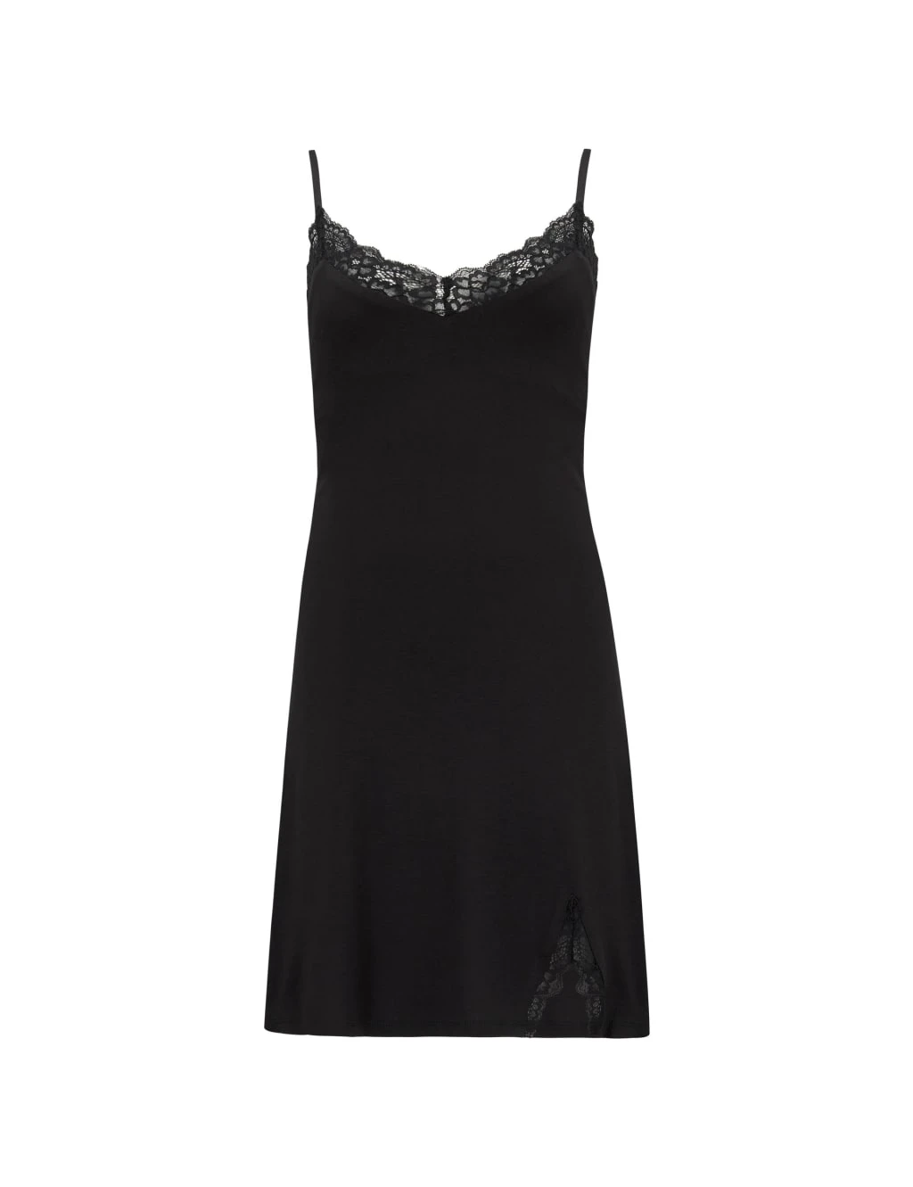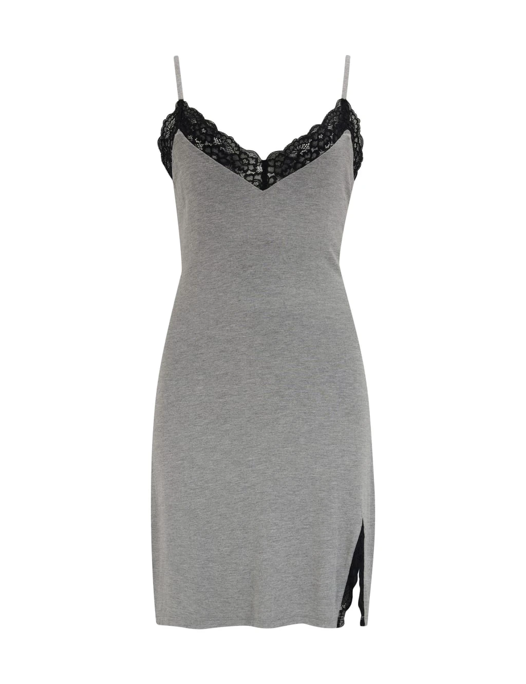 For comfort and sophistication, choose the soft jersey Sofa Loves Lace chemise from Pour Moi. It’s made to a regular fit and features hidden support. Floral lace trims the feminine v-neckline and the mid-thigh hem, which has a side split for a flirty touch. The shoulder straps are adjustable for a custom feel.