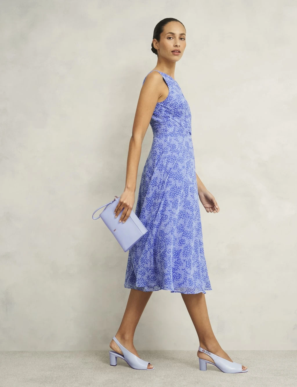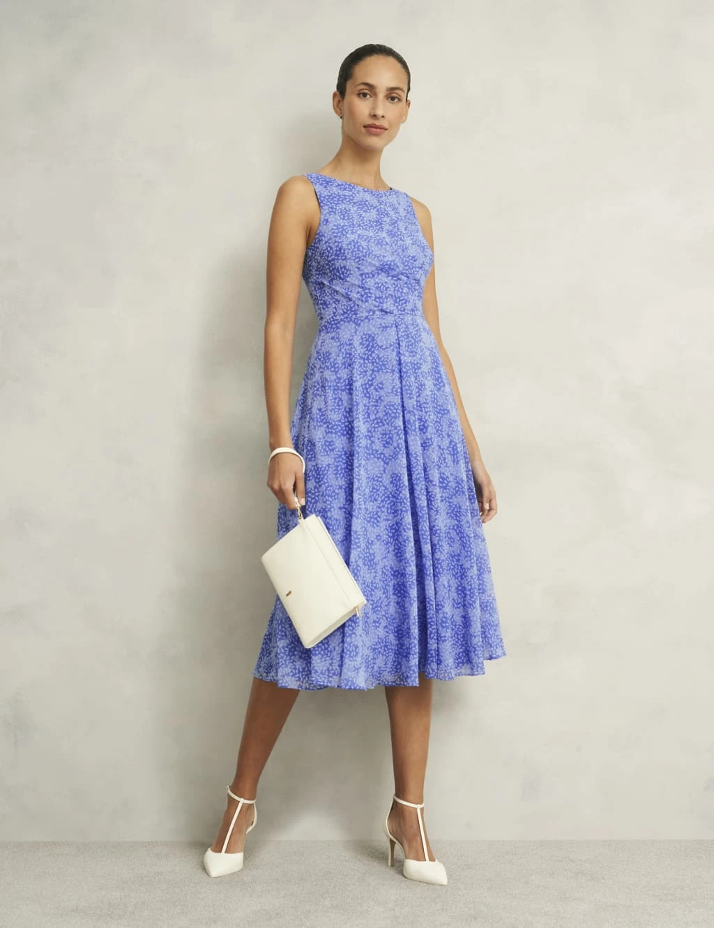 This printed midi dress by Hobbs is sure to turn heads at your next occasion. It’s crafted in a comfy regular fit, with a flattering skater silhouette. The sleeveless bodice features a neat round neckline and fastens with a concealed zip at the back. Ruching on the front adds an elegant finish.