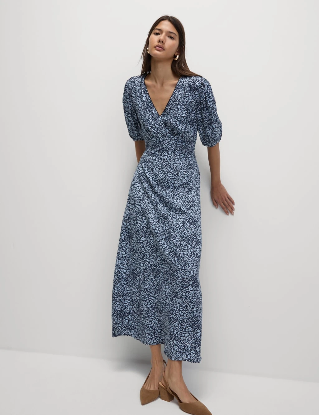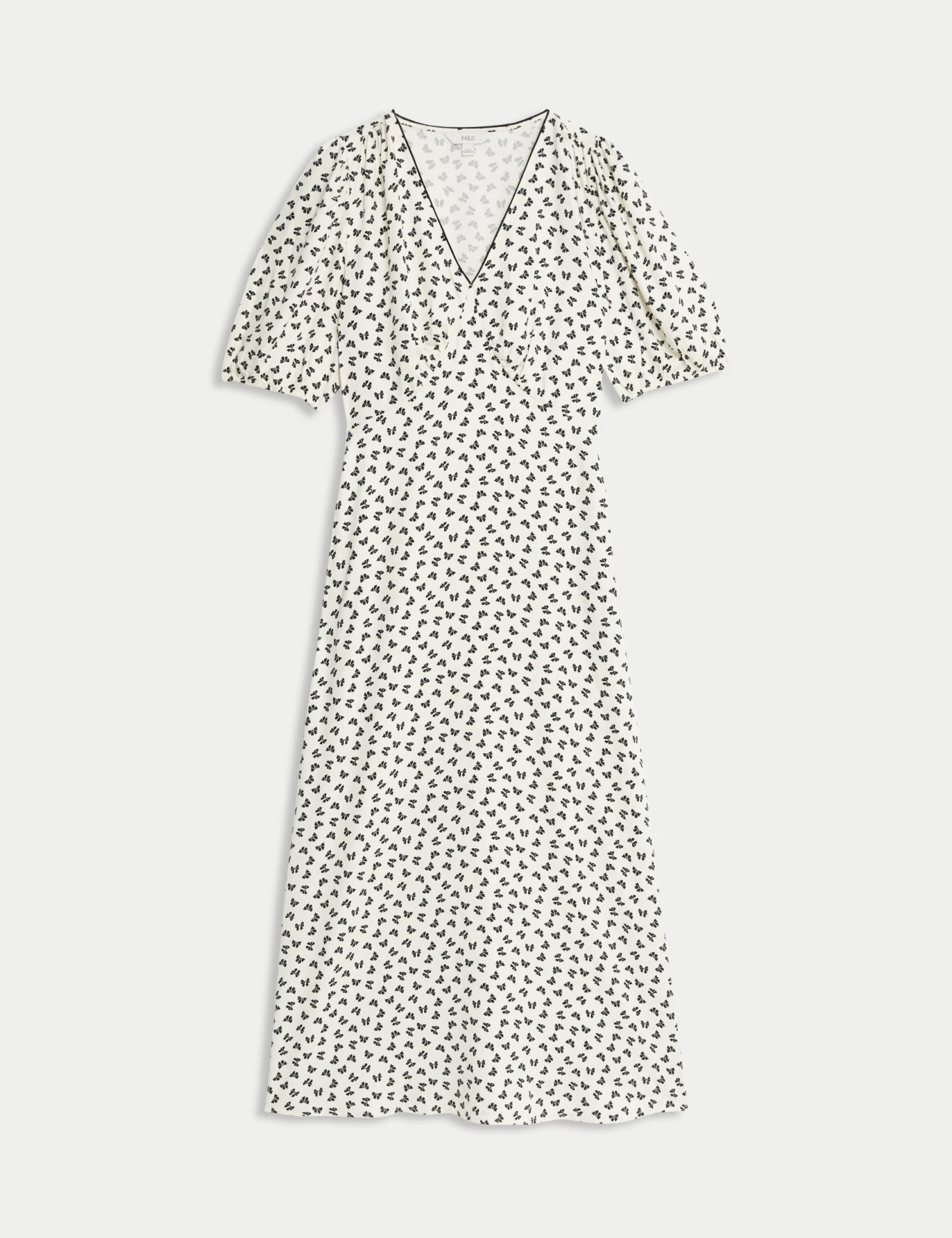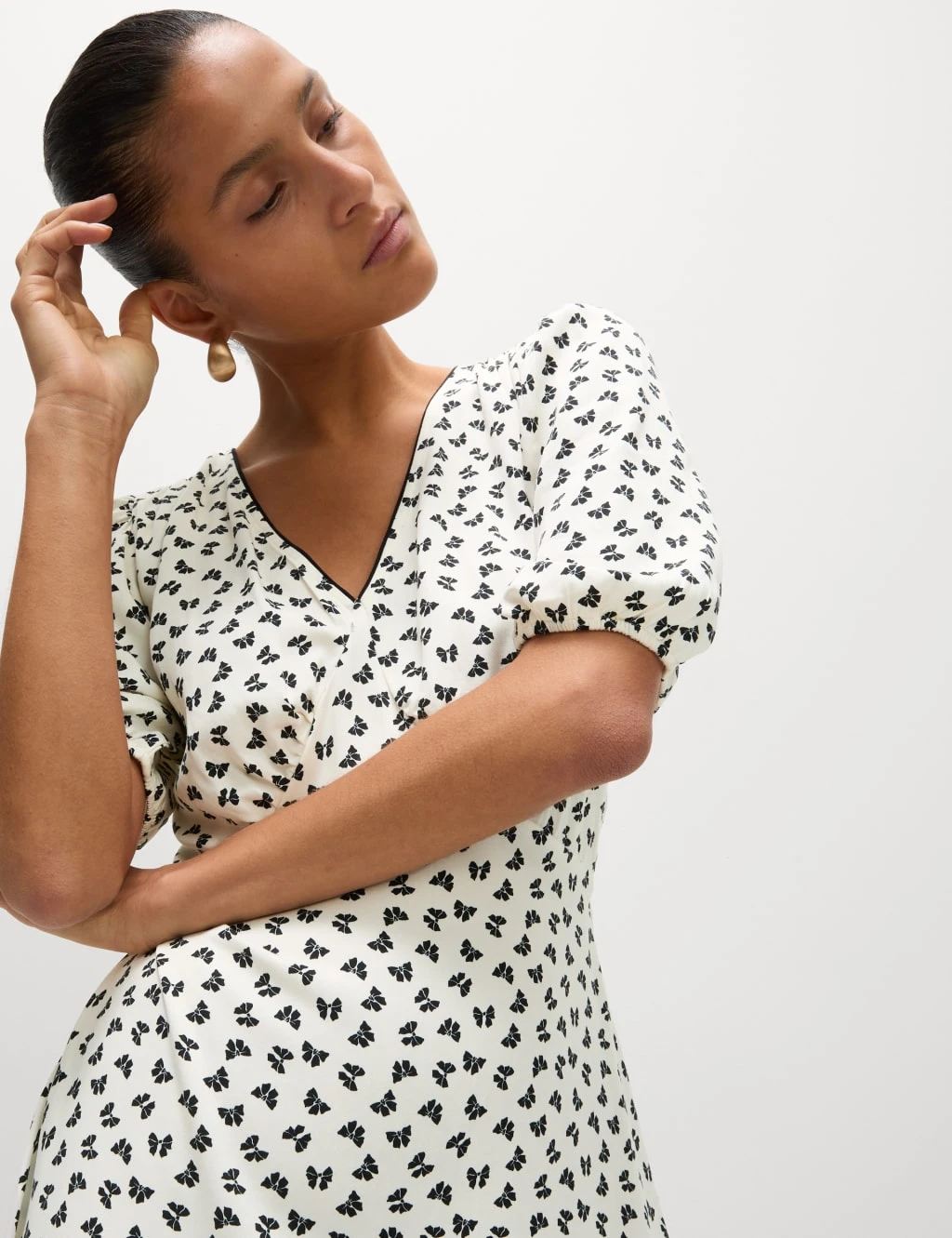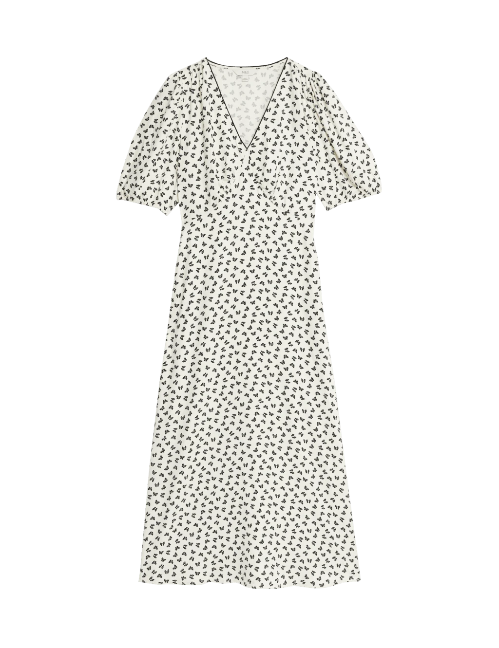 With its dainty print, this tea dress is an elevated choice for smart or casual occasions this season. It’s cut in a regular fit, with a midi-length skirt and voluminous short sleeves. The wrap bodice and flattering v-neckline ensures a feminine look. A discreet zip fastening completes this elevated style. M&S Collection: easy-to-wear wardrobe staples that combine classic and contemporary styles.