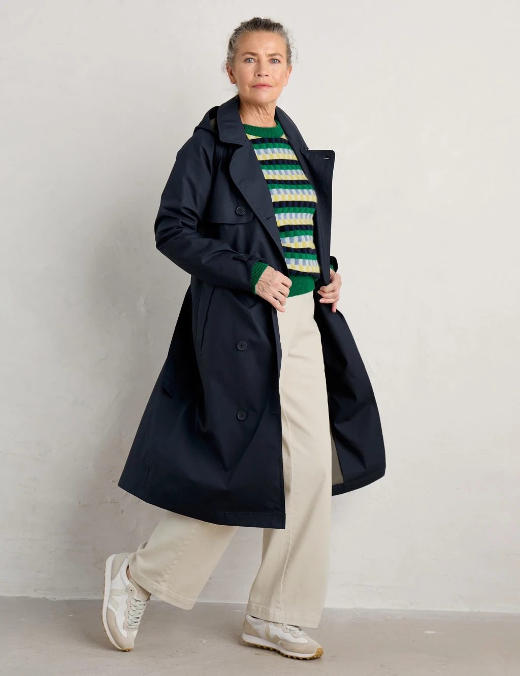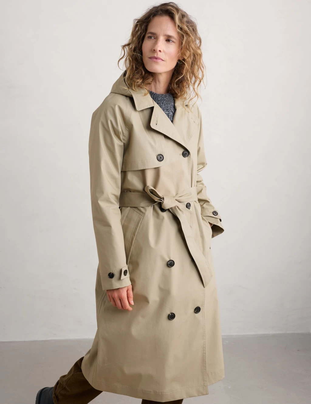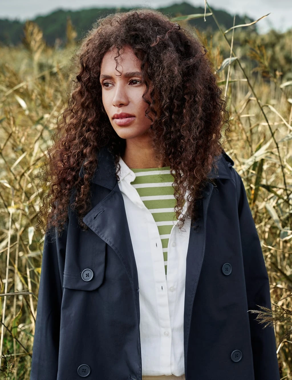 This pure cotton trench coat from Seasalt Cornwall combines timeless style with great protection from the elements. It’s cut to a regular fit, in a true longline length to offer generous coverage. A tie belt pulls you in the waist, making for a flattering silhouette. Pockets at the hips provide handy storage, while double-breasted front buttons and buttoned straps on the cuffs add the final touches.