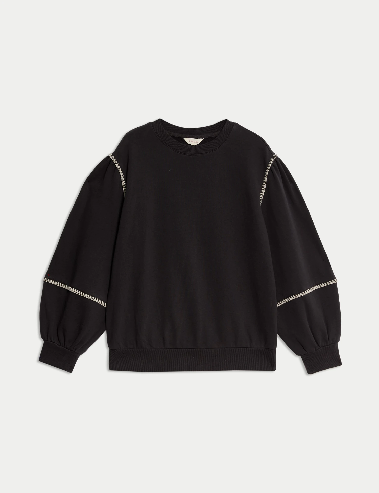 This pure cotton sweatshirt from our Per Una collection is a comfy addition to your casual wardrobe. It’s made in a roomy oversized fit, with an easy crew neck. The blouson sleeves are embroidered for a pretty final touch. Per Una: stylish designs crafted with carefully considered details and feminine flourishes.