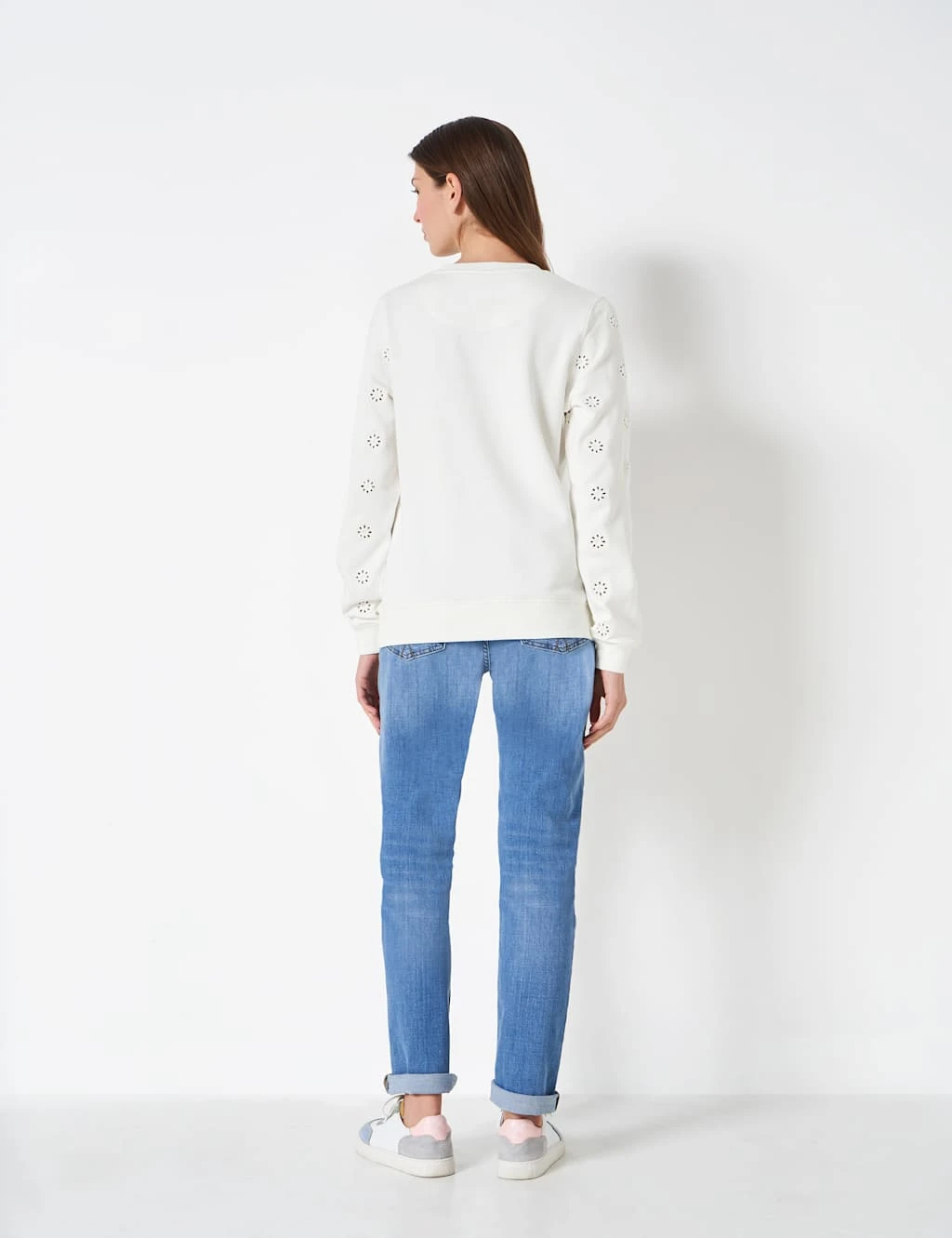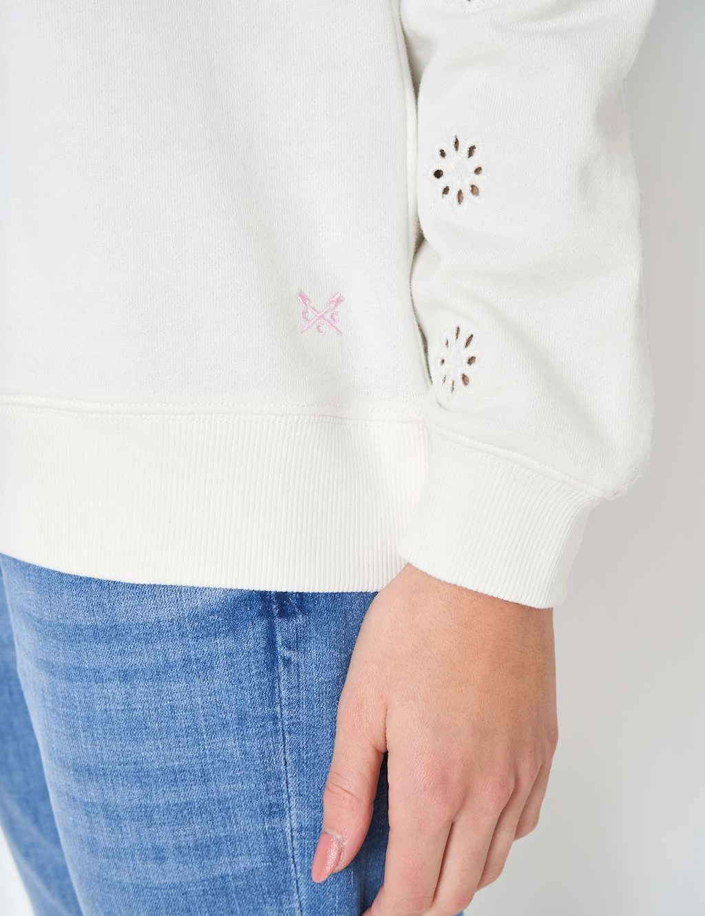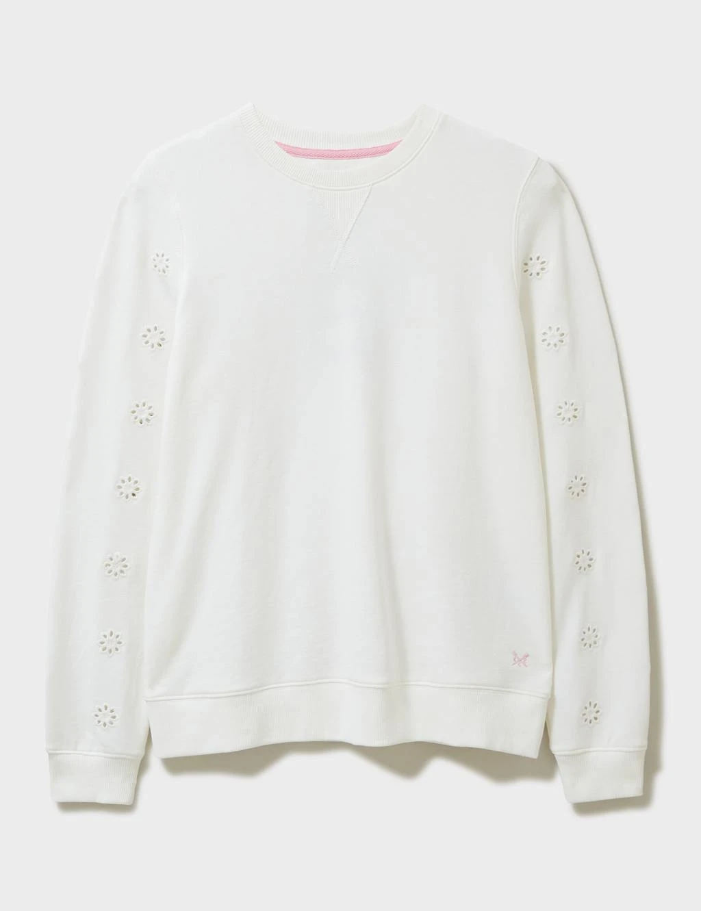 Bring a fresh feel to spring ensembles with this supersoft cotton sweatshirt from Crew Clothing. It’s designed in a comfy regular fit with a classic crew neck and ribbed trims. Floral broderie detailing down the sleeves adds a feminine flourish. Plus, there’s a contrasting embroidered logo at the hem for an authentic finish.