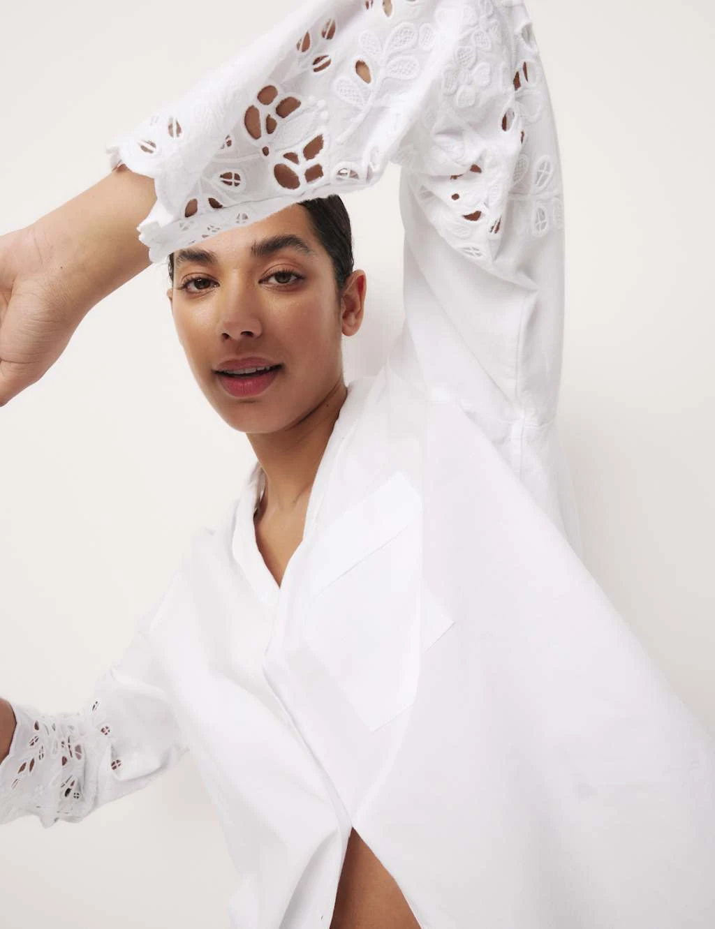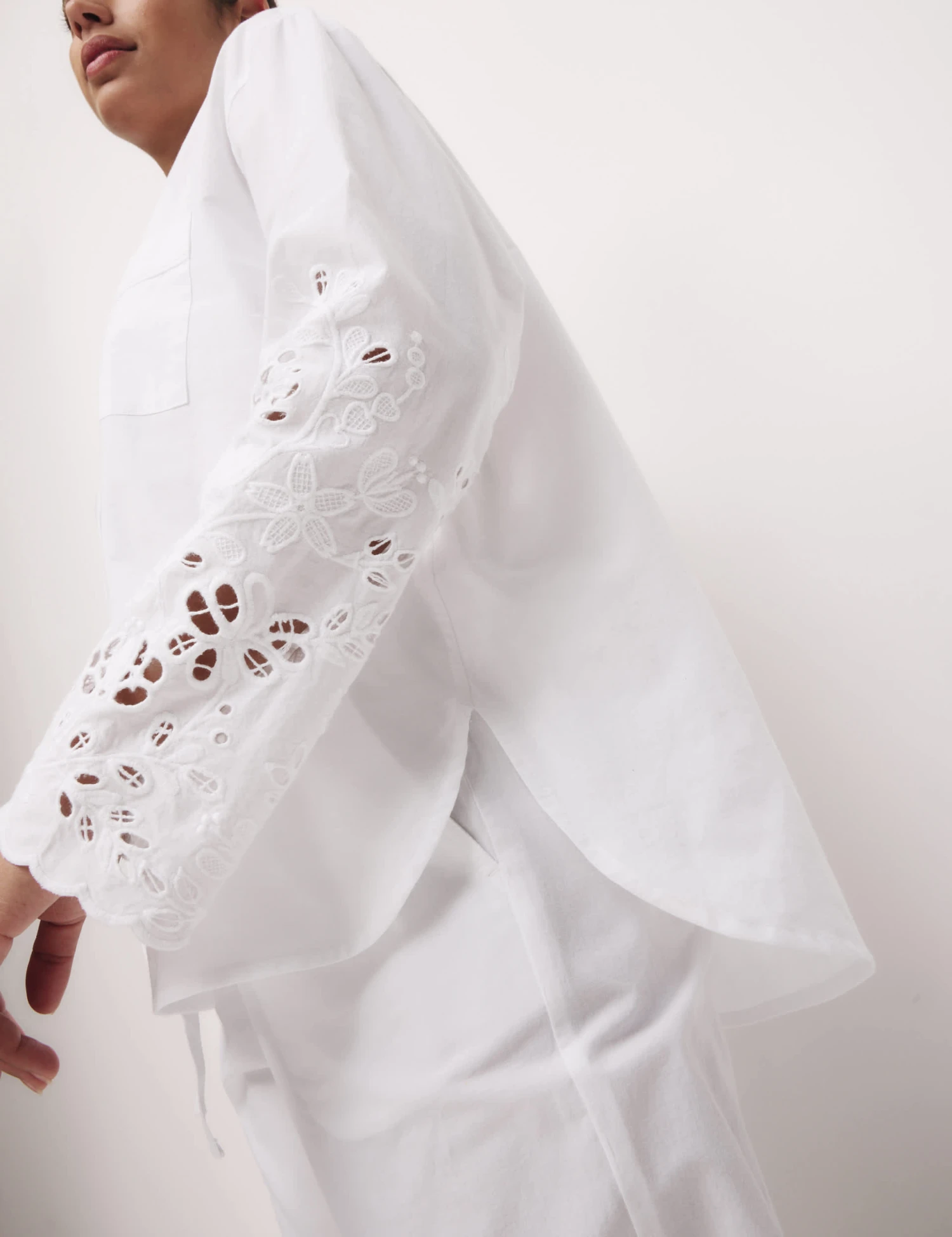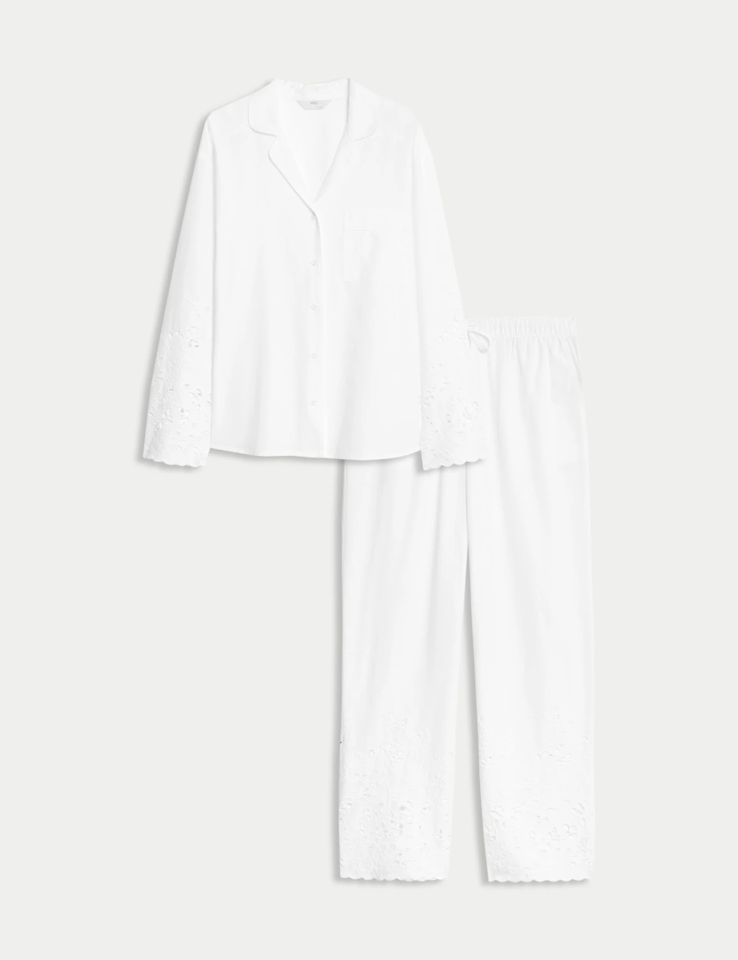 These pyjamas are wonderfully soft and breathable, thanks to their pure cotton fabric. Regular fit set, comprising a button-up top and bottoms with a comfy drawstring waist. Broderie trims add a delicate touch. M&S Collection: versatile styles in modern shapes with unique and playful details.