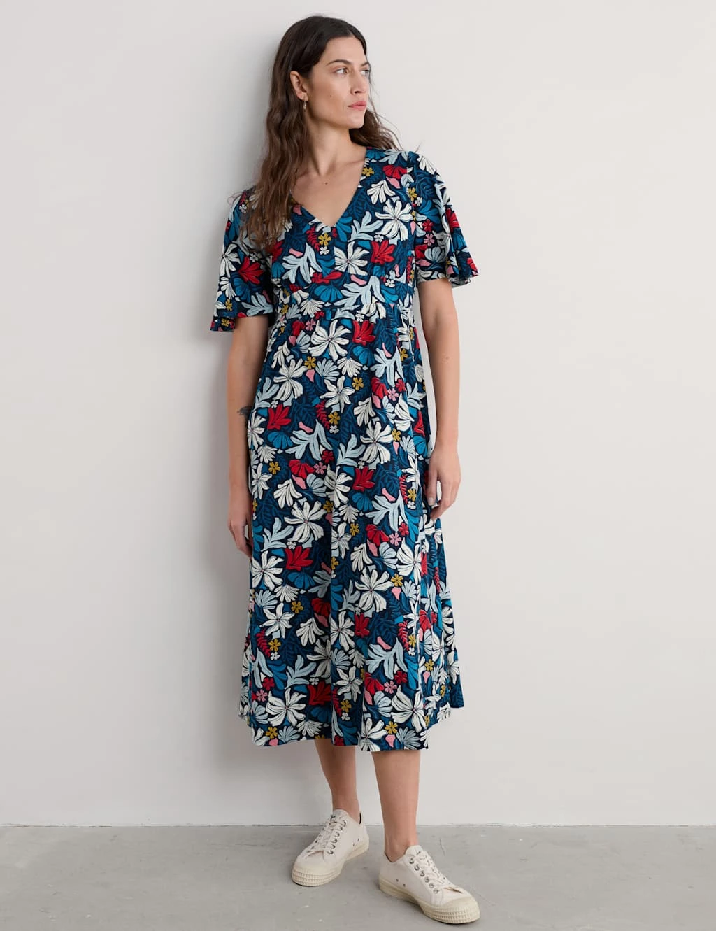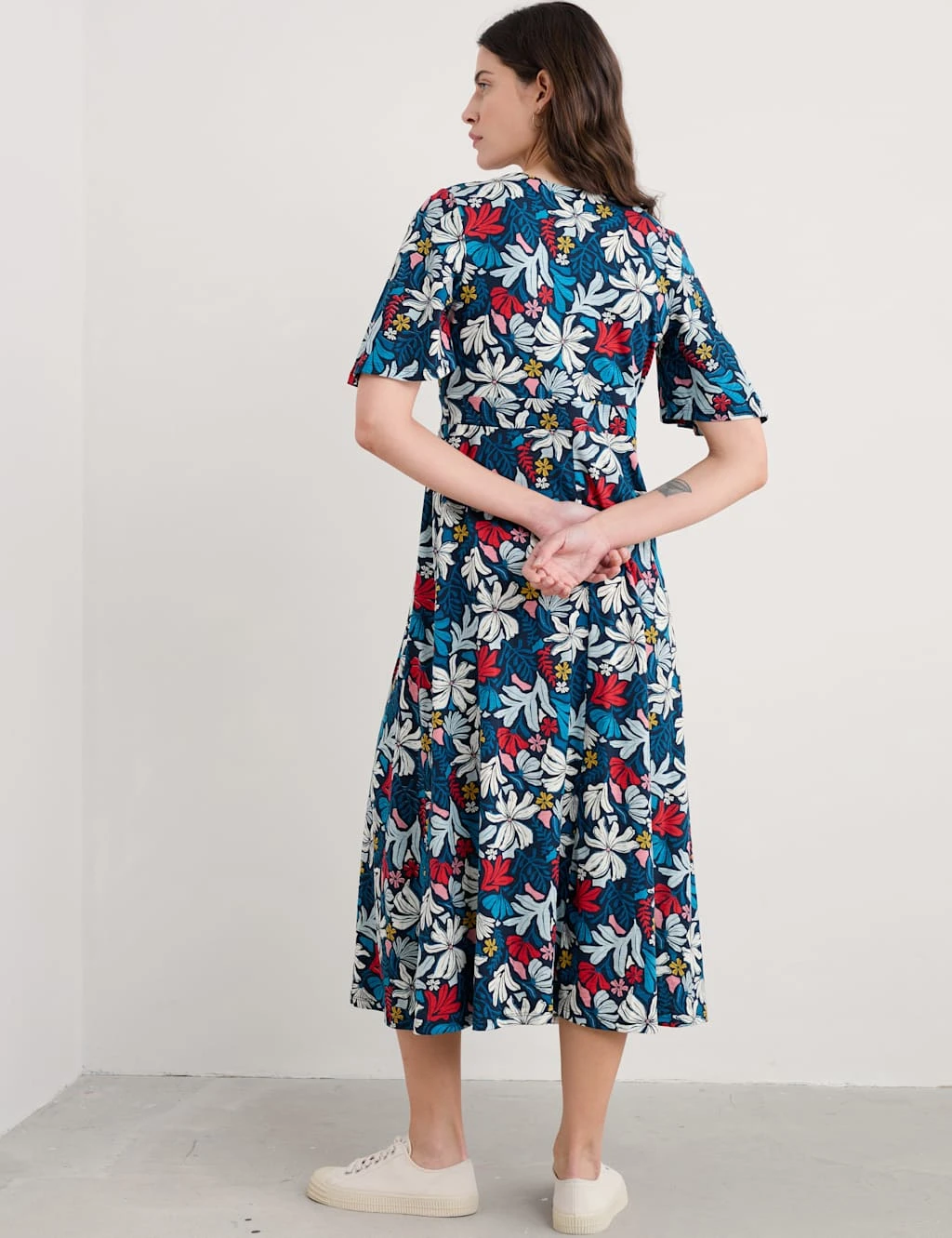 This pure cotton dress from Seasalt Cornwall is flattering, stylish and comfortable. It’s made in a regular fit with a waisted middle, for a feminine silhouette. A floral print gives the piece a romantic look, accentuated by the elegant v-neckline and half sleeves.