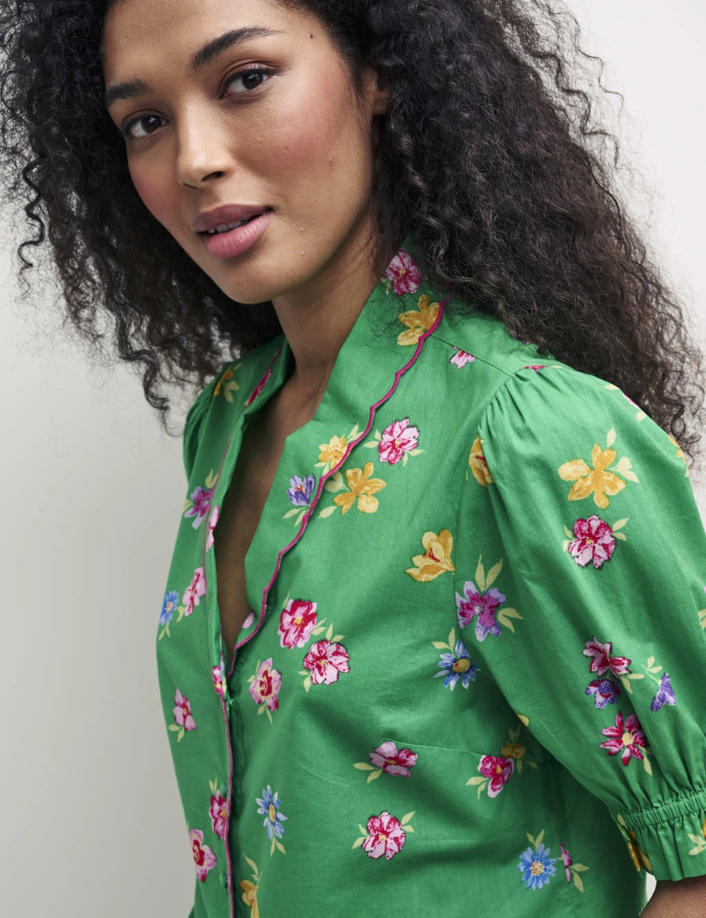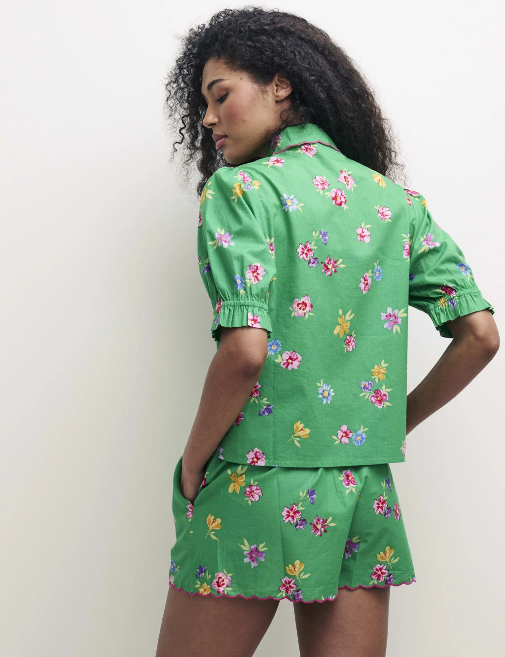 This charming short pyjama set from Nobody’s Child is made from breathable organic cotton to ensure a comfortable night’s sleep. The set includes a puff-sleeved blouse with a revere collar and neat button-through fastening, as well as a pair of shorts with a comfy shirred waist. Both are finished with a scalloped trim and an all-over floral print.