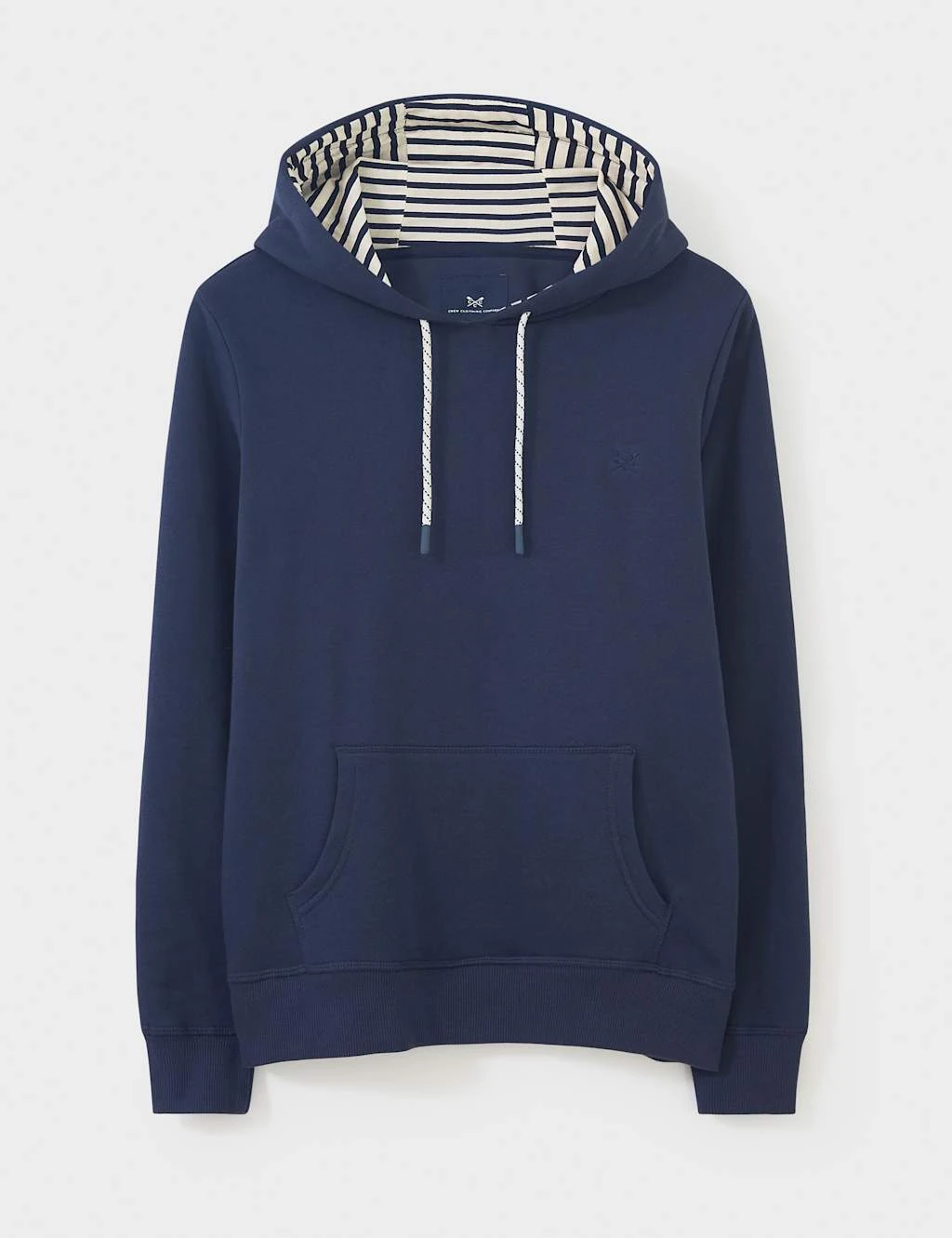 Opt for effortless casual style with this pure cotton hoodie from Crew Clothing. It’s made in a classic regular fit with ribbed trims and a kangaroo pocket to warm your hands. The striped lining on the hood and contrast drawcords add stylish touches, while embroidered branding at the chest adds a signature finish.