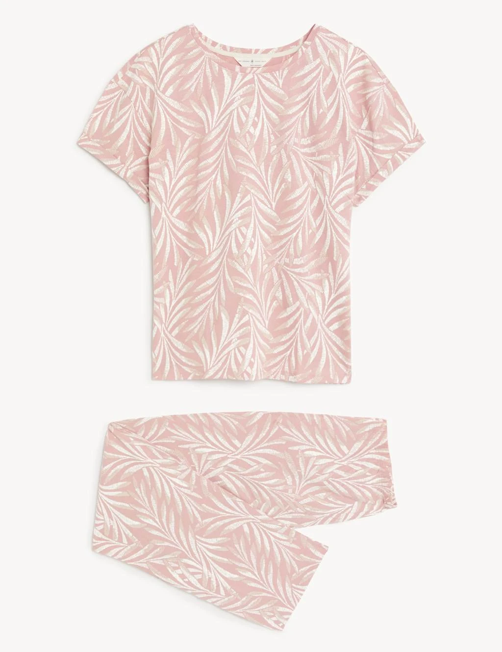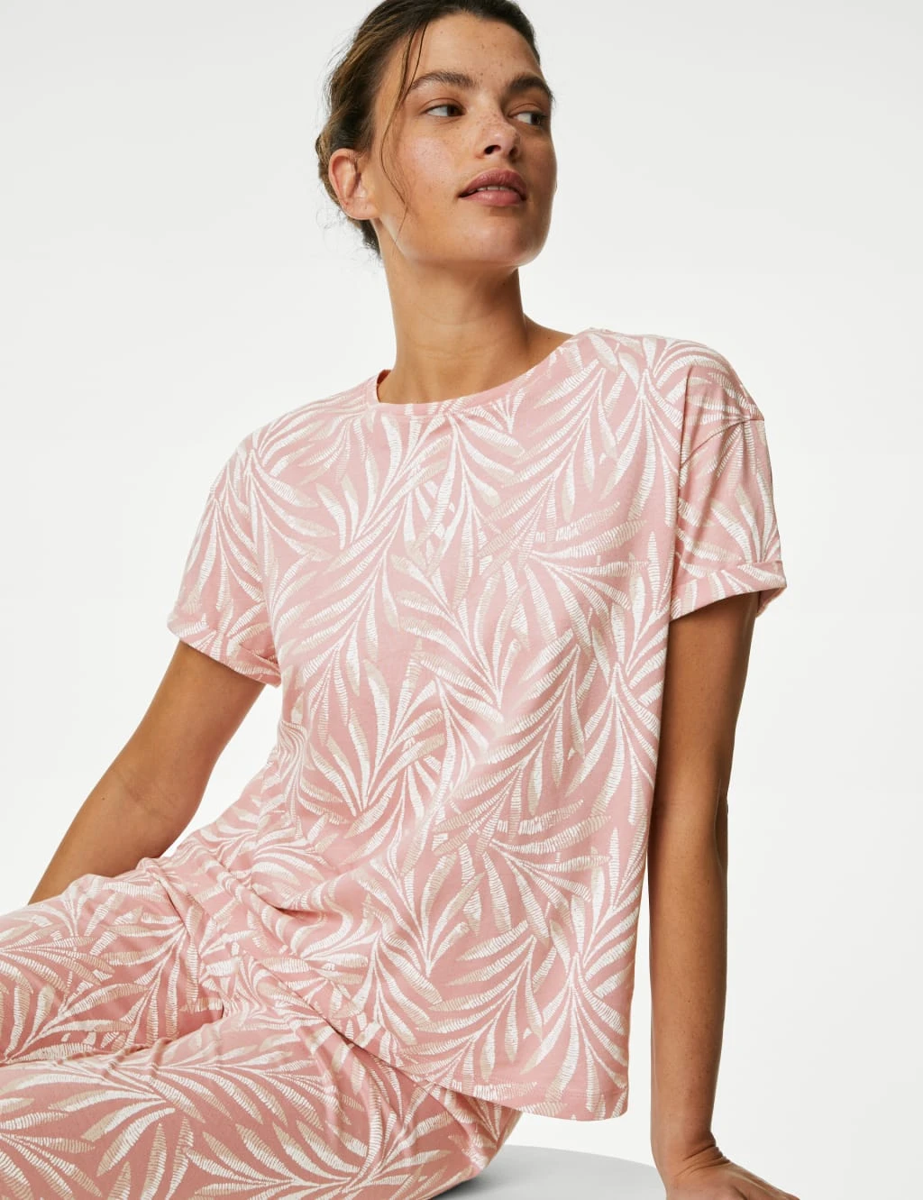 These pyjamas are crafted from pure cotton, for a gentle feel on your skin. Comfy regular fit, with an all-over leaf print that gives a dainty look. The short-sleeved top has turnback cuffs for a casual finish, while the long bottoms are made with an easy elasticated waist.