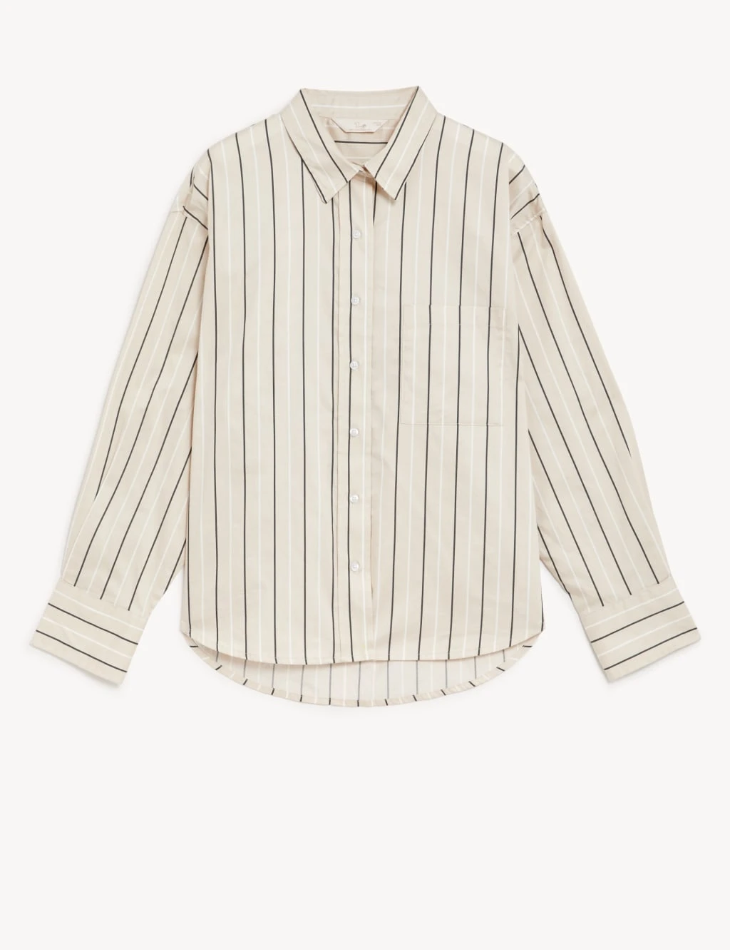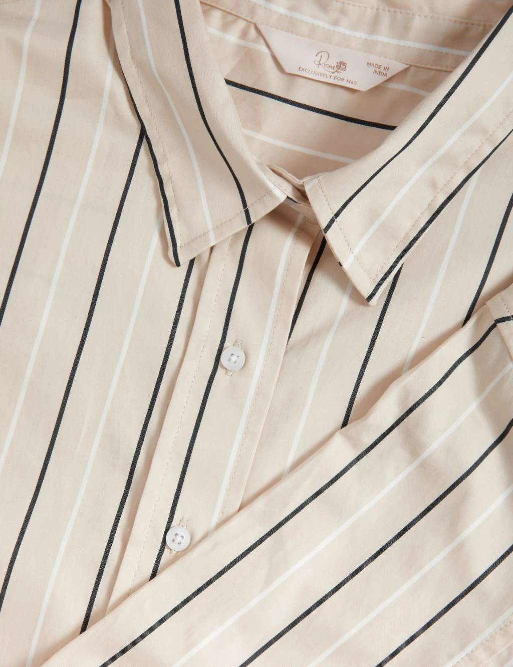 Bring a contemporary feel to your chill-out time with this pure cotton lounge pyjama shirt from the Rosie HomeWear collection. Designed in a modern short length with a neat patch pocket on the chest and exclusively designed signature rose gold hardware. Clean, crisp stripes adorn the piece all over. Rosie HomeWear: contemporary loungewear pieces designed to be styled your way.