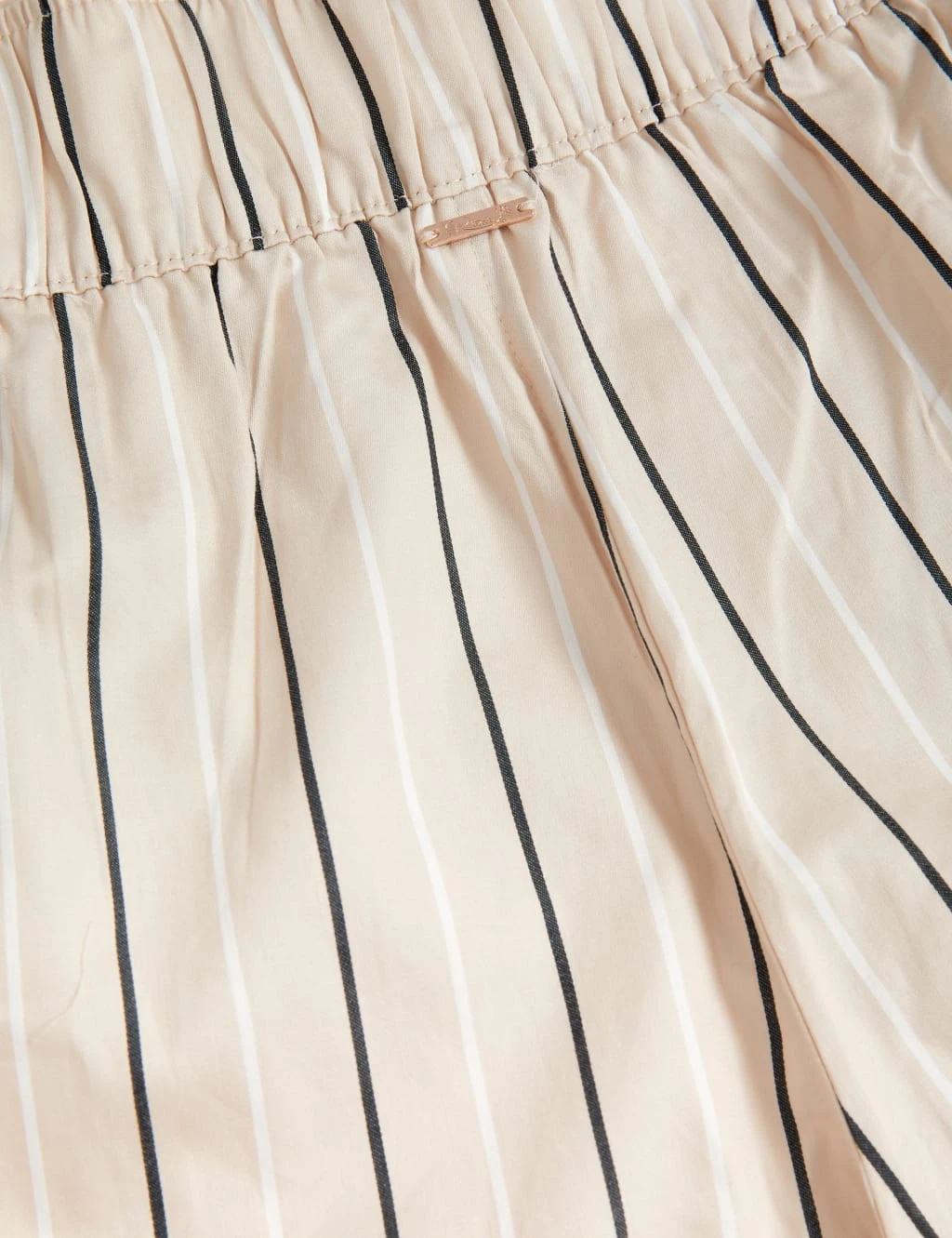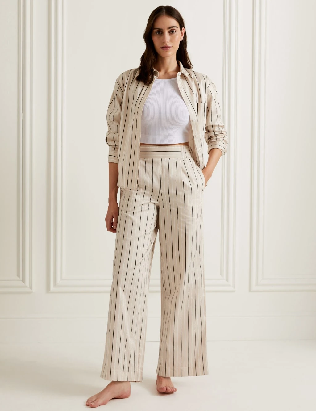These straight leg pure cotton lounge pyjama trousers from our Rosie HomeWear collection create a contemporary silhouette. Modern graphic stripes are pristine and flattering and feature exclusively designed signature rose gold hardware. Rosie HomeWear: contemporary loungewear pieces designed to be styled your way.