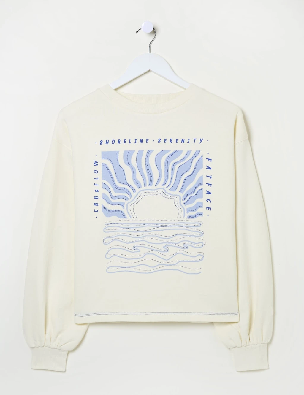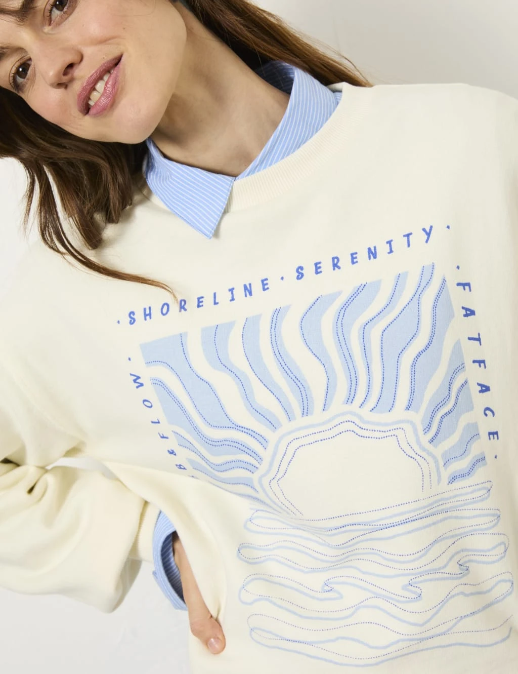 Bring a coastal vibe to your casual wardrobe with this pure cotton sweatshirt by FatFace. It’s made in a regular fit, with dropped shoulders on the long sleeves for an easy-going look. The graphic on the chest features a sea scene with calming slogans. Ribbed trims at the cuffs and crew neckline complete the design.