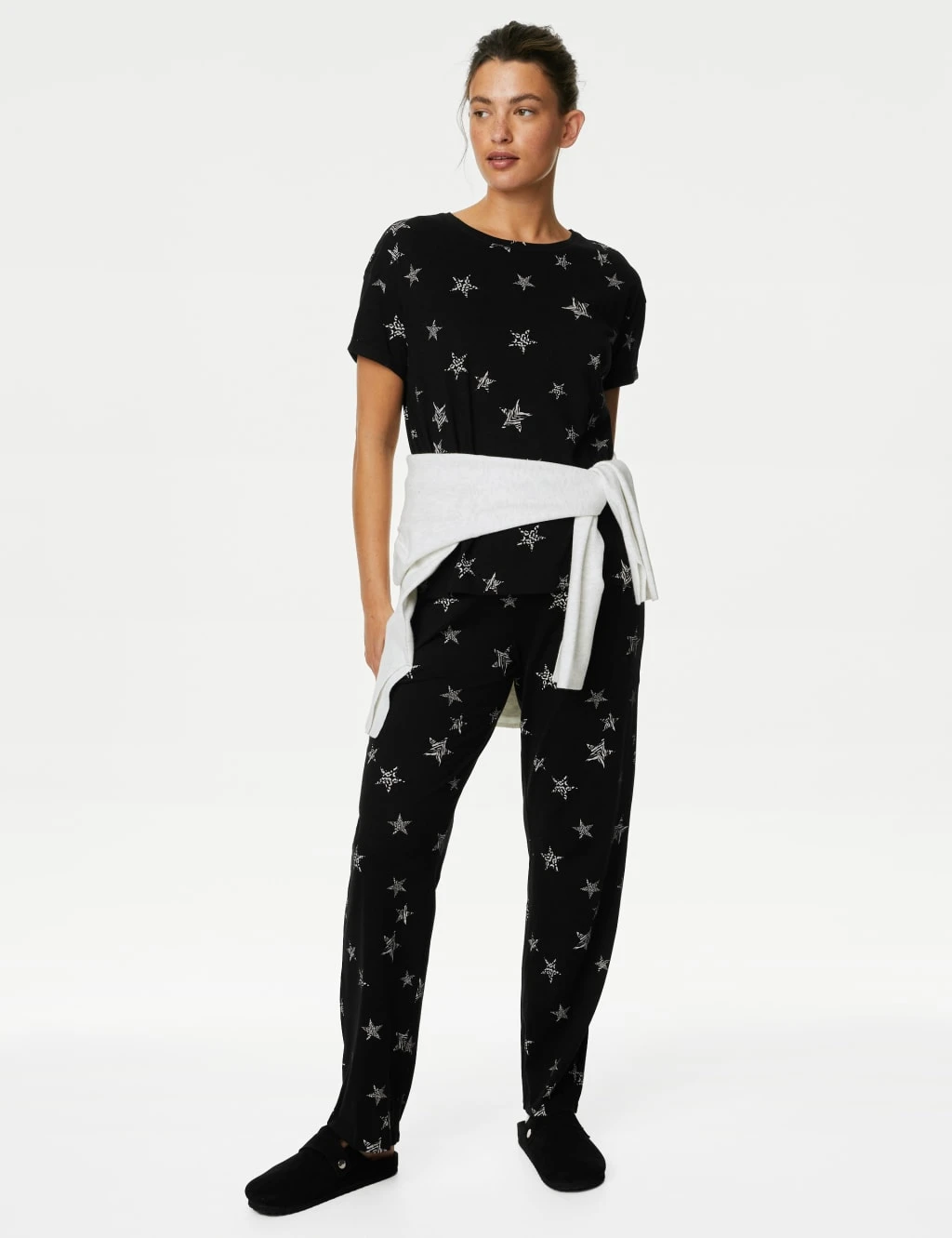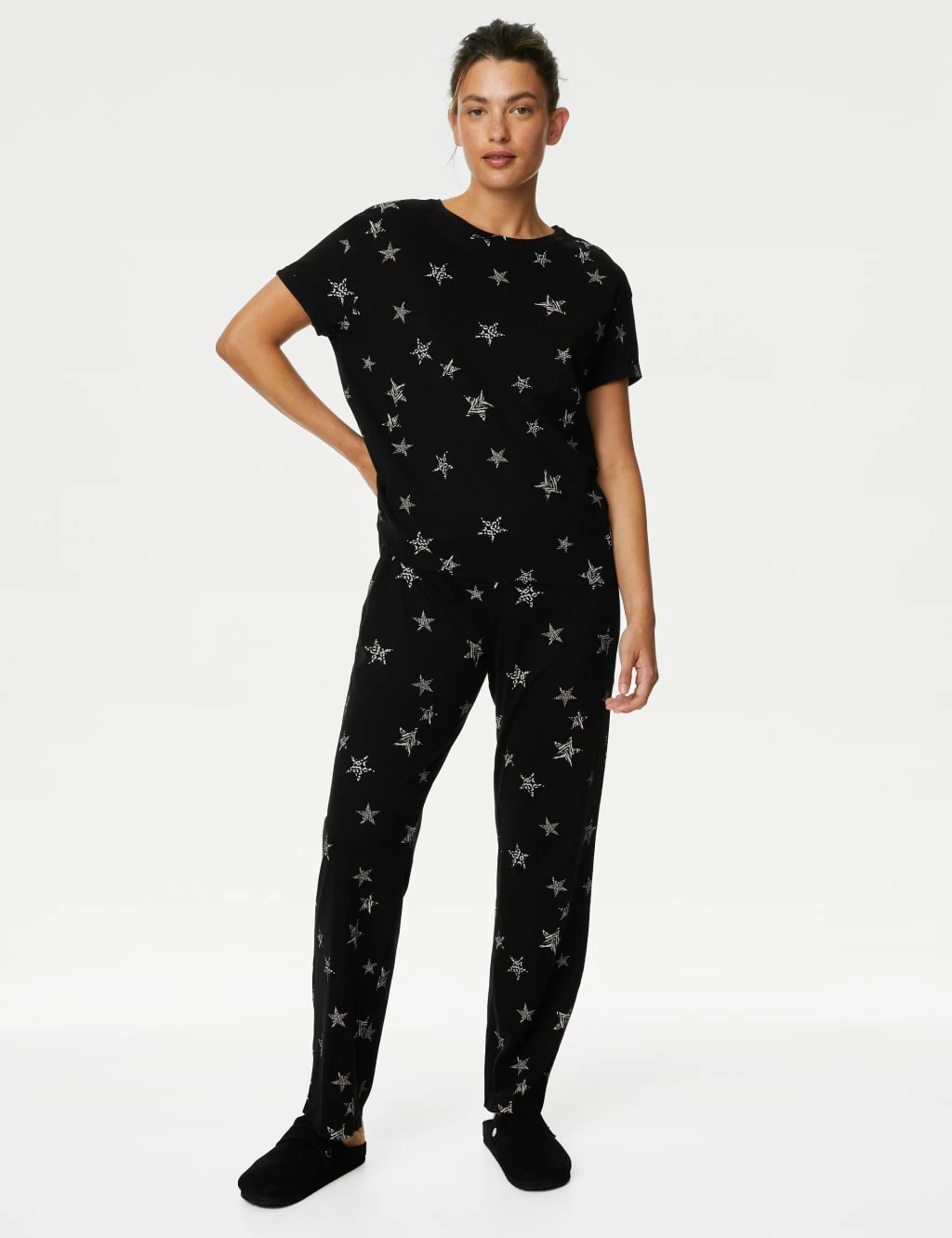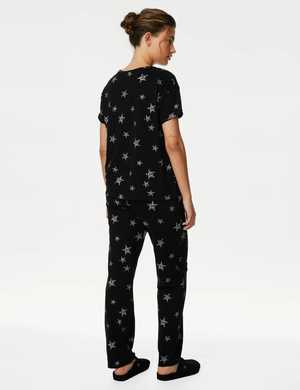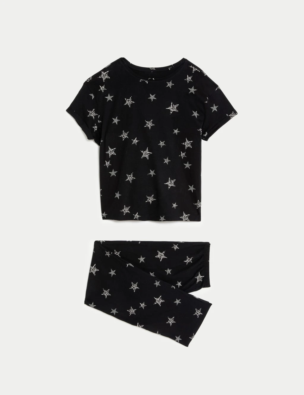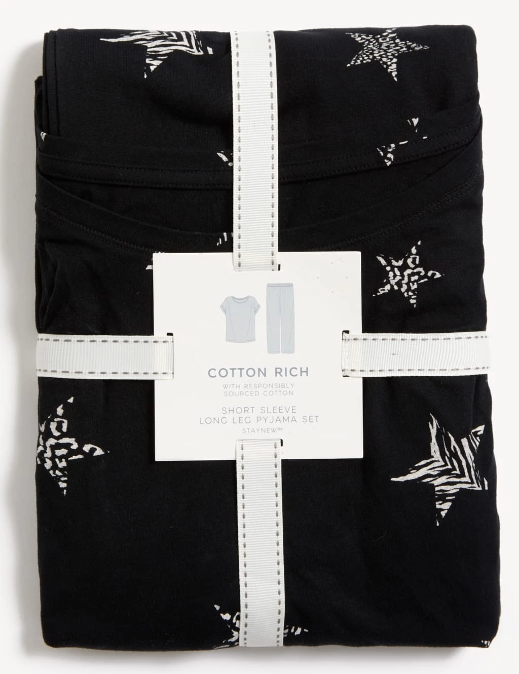 Bring the safari to bedtime with these pure cotton pyjamas, decorated with animal print stars. Regular fit set includes a short-sleeved top and bottoms with a comfy elasticated waist. StayNew™ technology means they’ll look new for longer. We only ever use responsibly sourced cotton for our clothes.