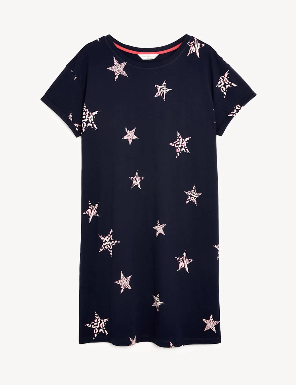 With its dreamy star print, this pure cotton nightdress is made for restful nights. Comfy regular fit, with a short hemline for lighter coverage. The short sleeves are finished with neat turnback cuffs. M&S Collection: versatile styles in modern shapes with unique and playful details.