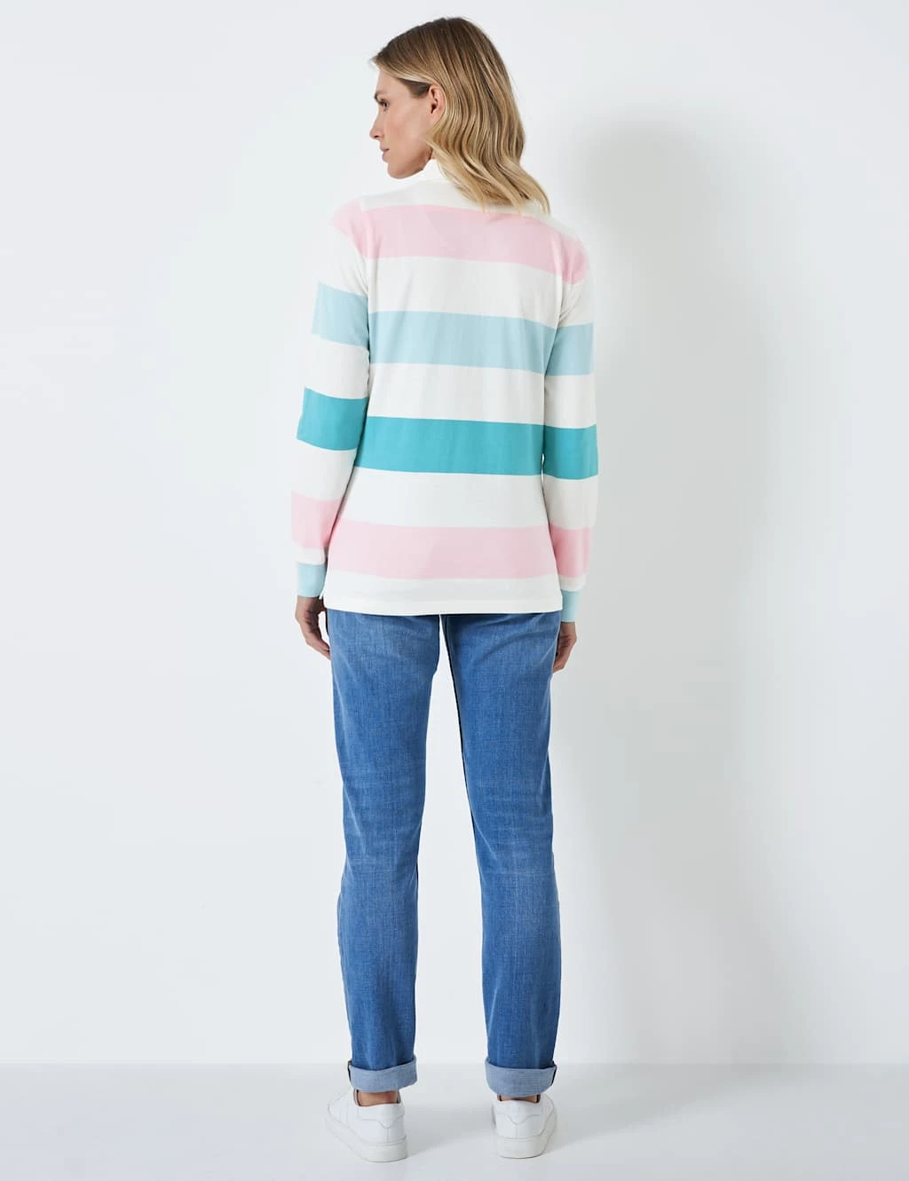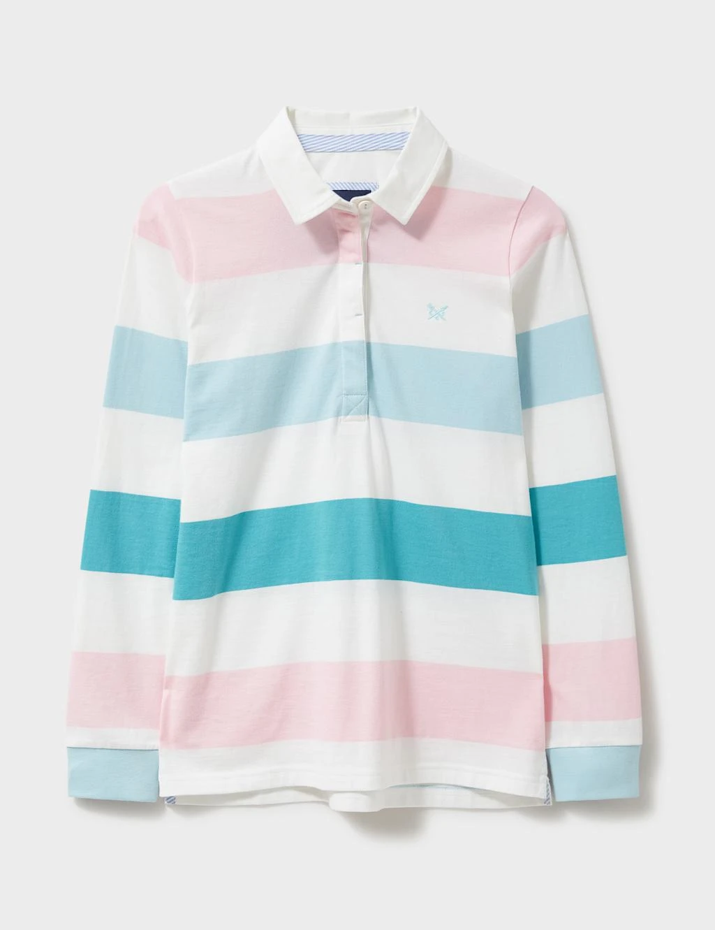 Go for a sporty, casual look with this colourful striped rugby top from Crew Clothing. It’s made in a comfy regular fit from washed pure cotton for supreme softness. This long-sleeved piece features a twill collar and placket, with rubberised buttons. The embroidered crossed-oars branding on the chest adds a signature touch.