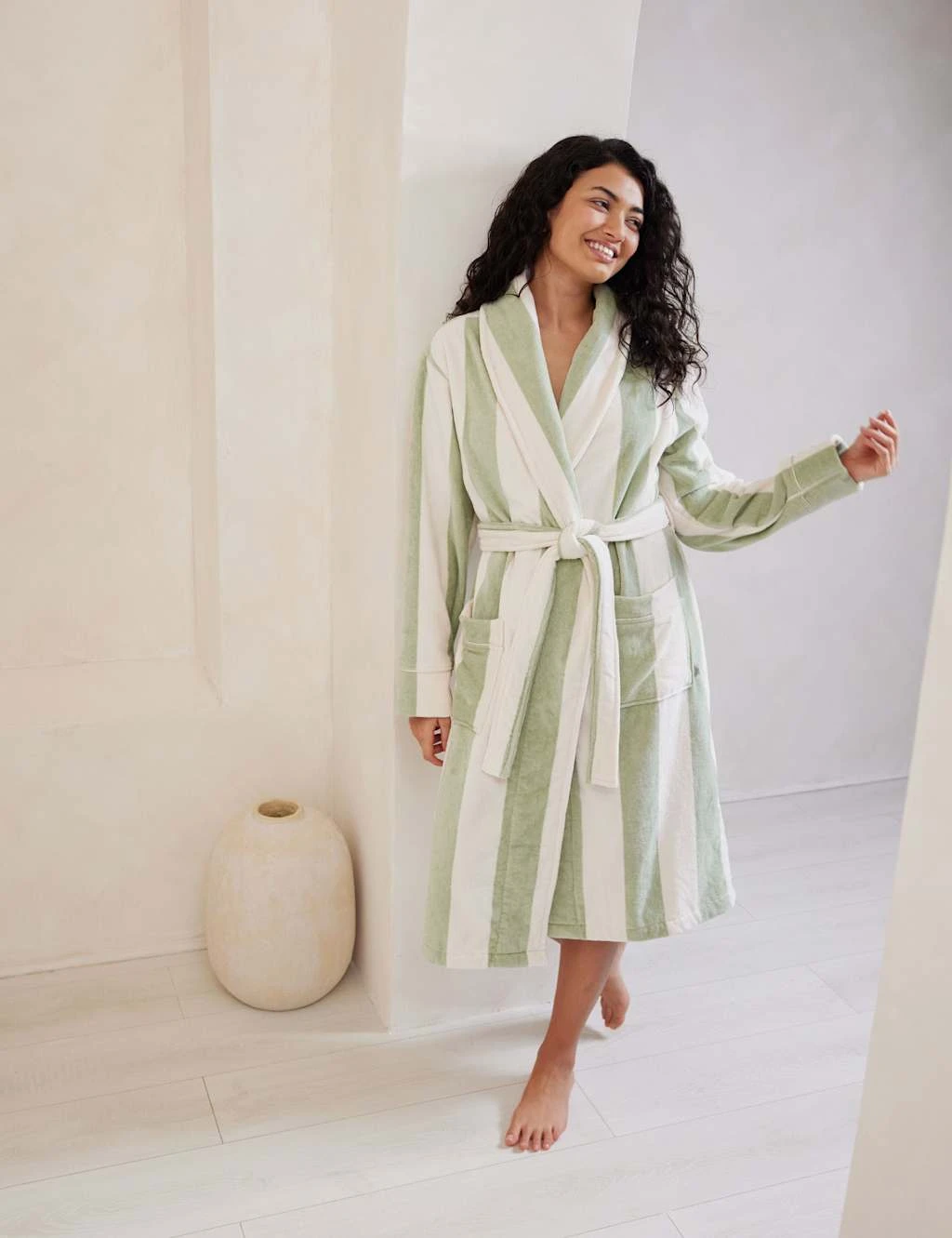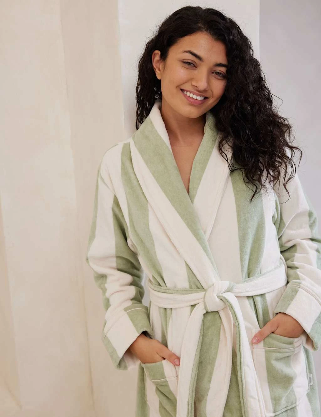 Step out of the shower and into the luxurious comfort of this cotton towelling robe from Chelsea Peers. It’s made in a regular fit, with a self-tie belt at the waist and a cosy shawl collar. All-over stripes give added style.