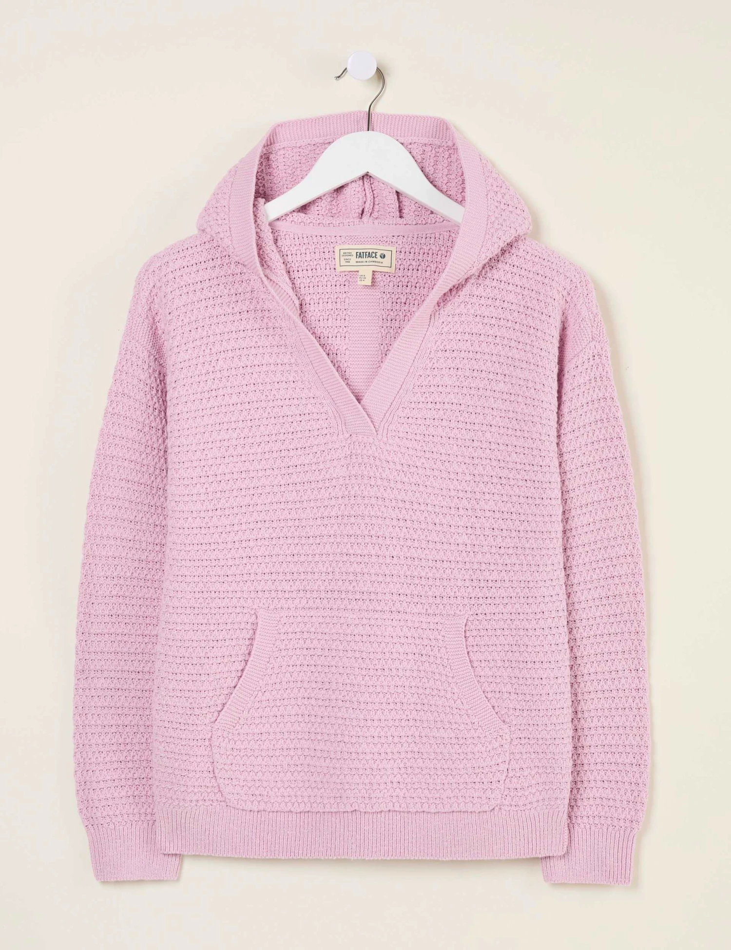 This hoodie from FatFace is knitted from pure cotton yarn for cosy appeal. It’s made in a regular fit, with a textured stitch that gives it a tactile handfeel. The hood falls seamlessly into a flattering v-neckline, while a kangaroo pocket provides handy storage. Ribbed trims at the cuffs and hem complete the design.
