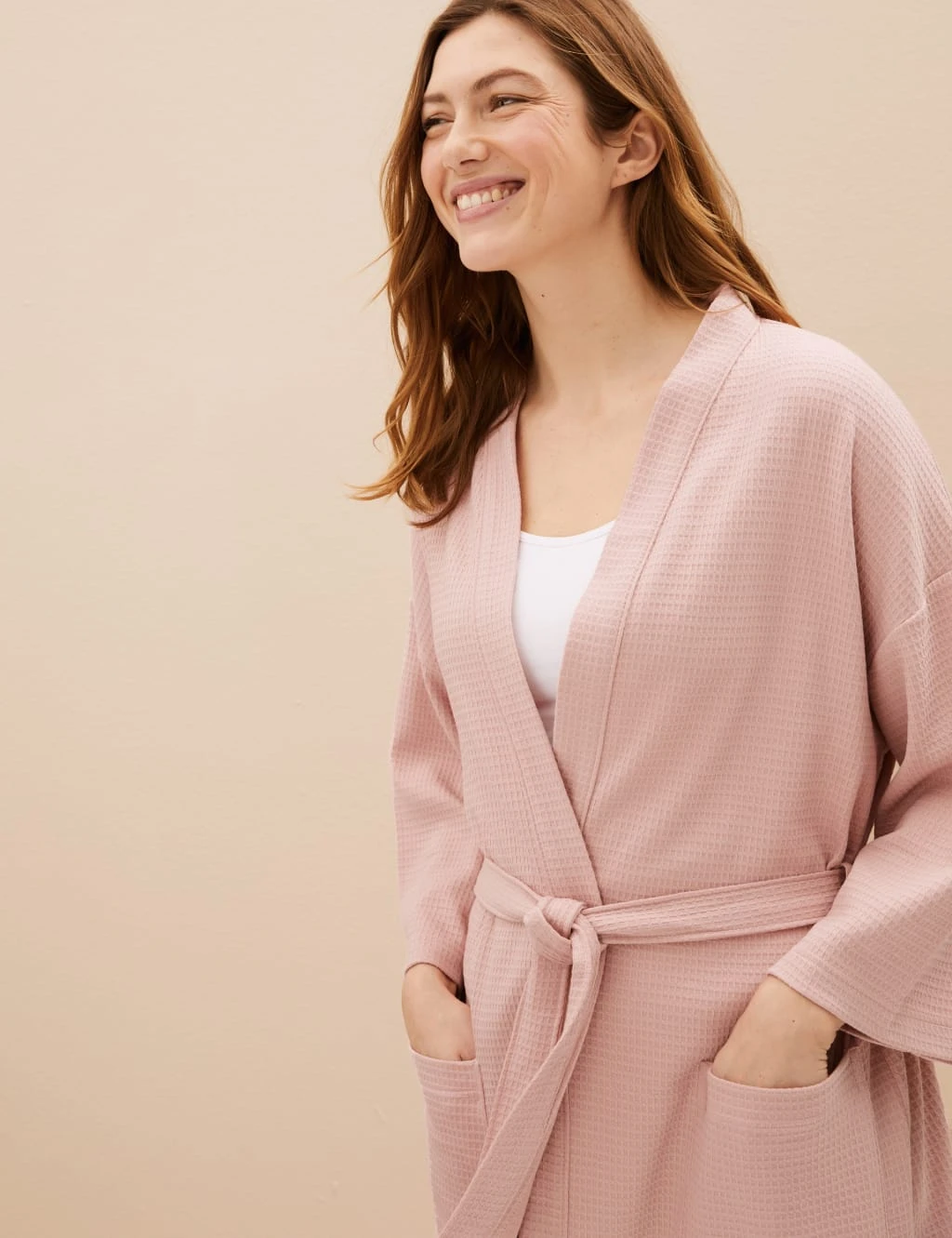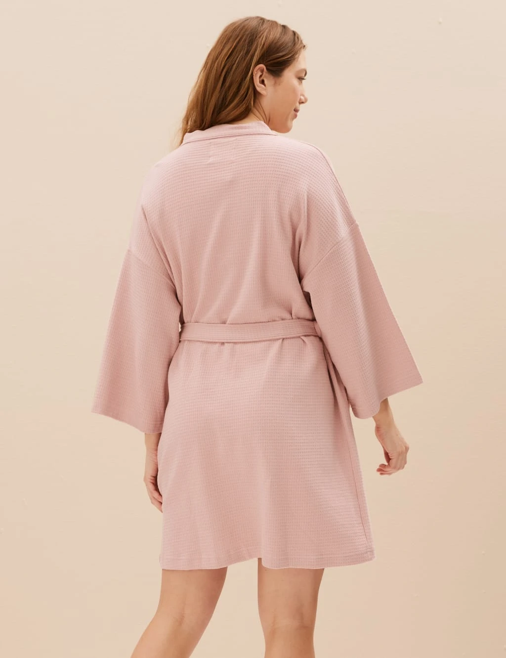 Throw on this pure cotton dressing gown for soft, breathable comfort at home. Knee-length style made to a comfy regular fit. Classic tie belt fastening and drapey long sleeves. The waffle weave gives the fabric extra absorbency. Perfect as a gift, it comes neatly flat-packed. M&S Collection: versatile styles in modern shapes with unique and playful details.