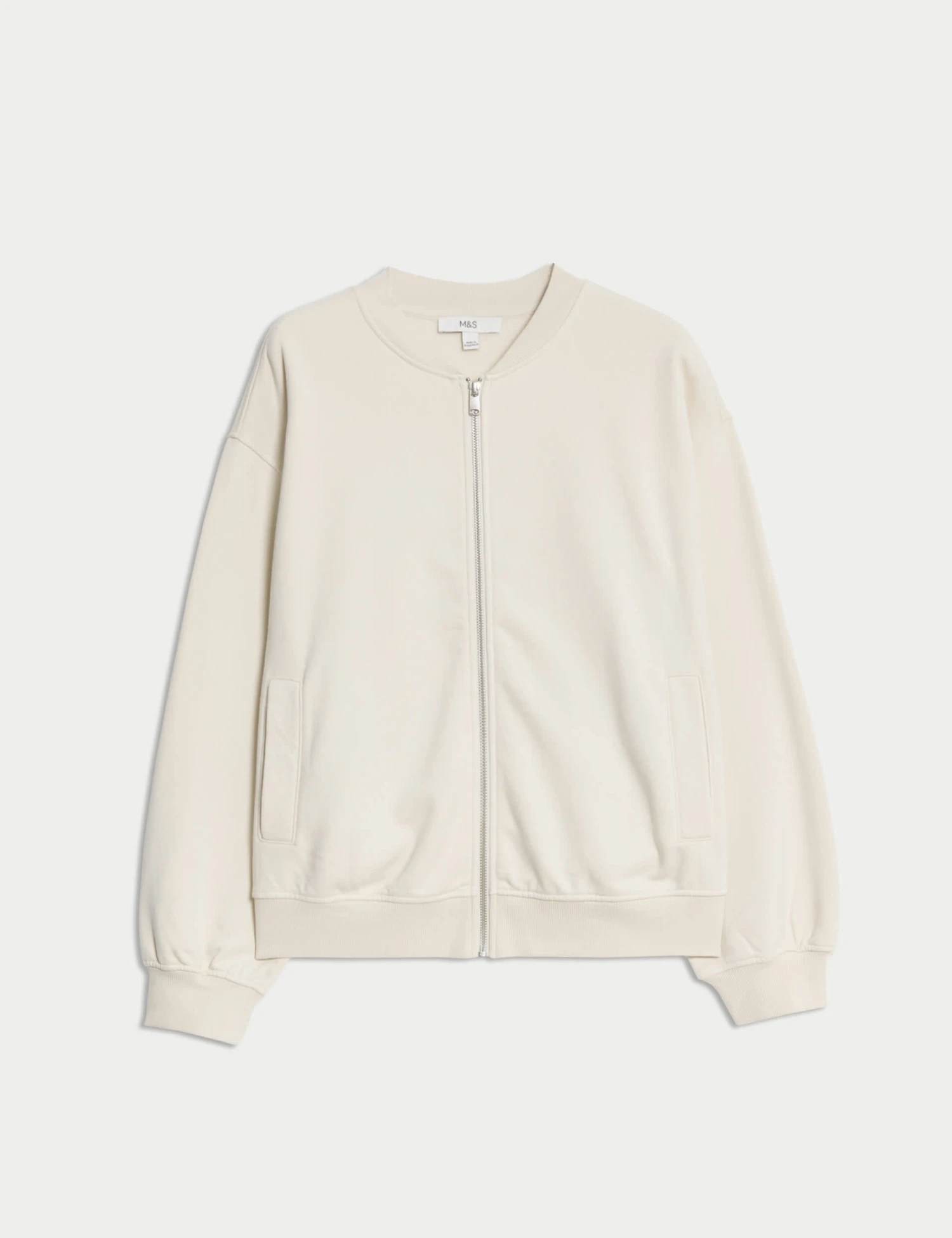 Layer up in effortless style with this pure cotton sweatshirt. It’s cut in a comfortable regular fit, with a classic crew neckline and an easy zip-through fastening. Handy waist pockets complete the look with a practical touch. M&S Collection: easy-to-wear wardrobe staples that combine classic and contemporary styles.