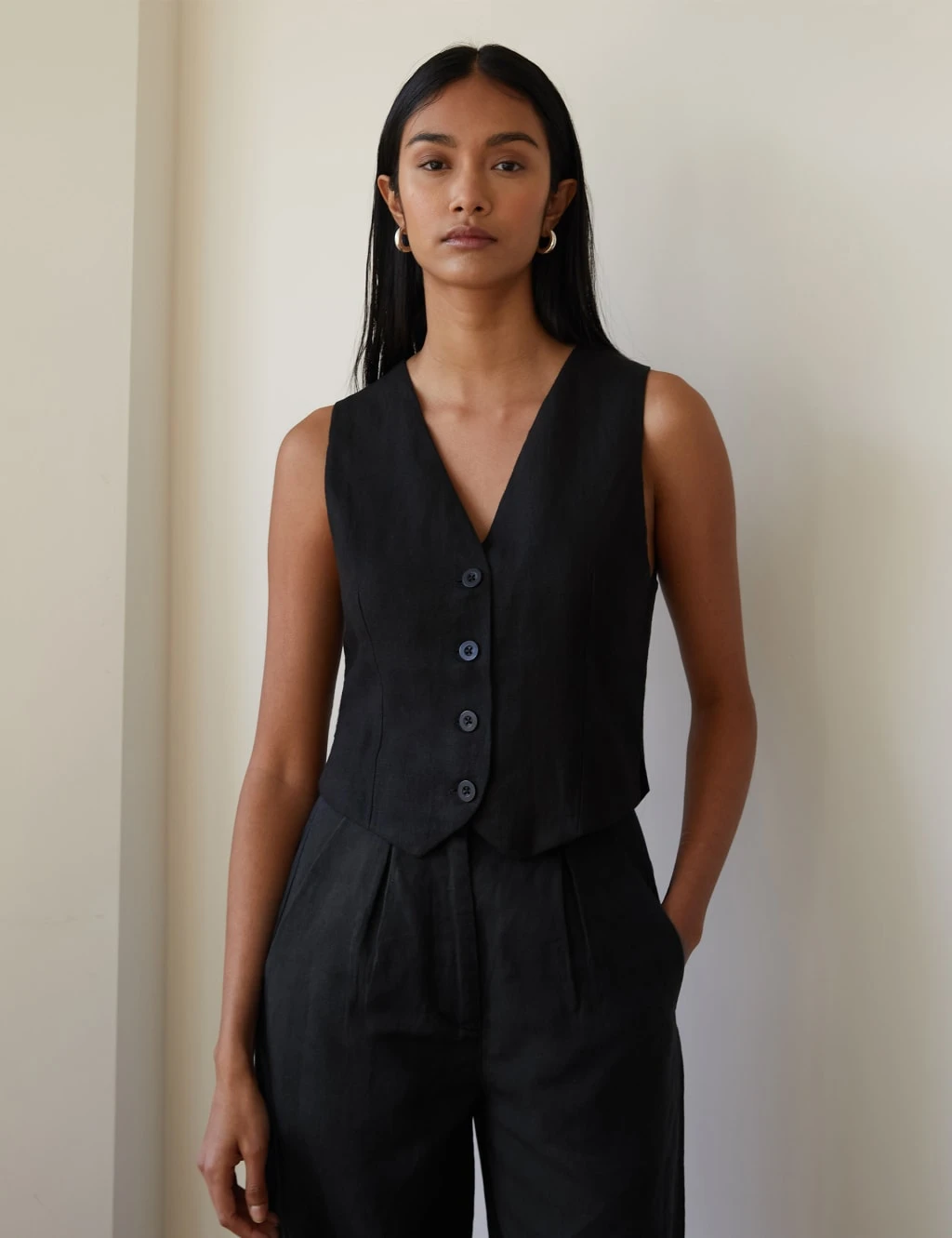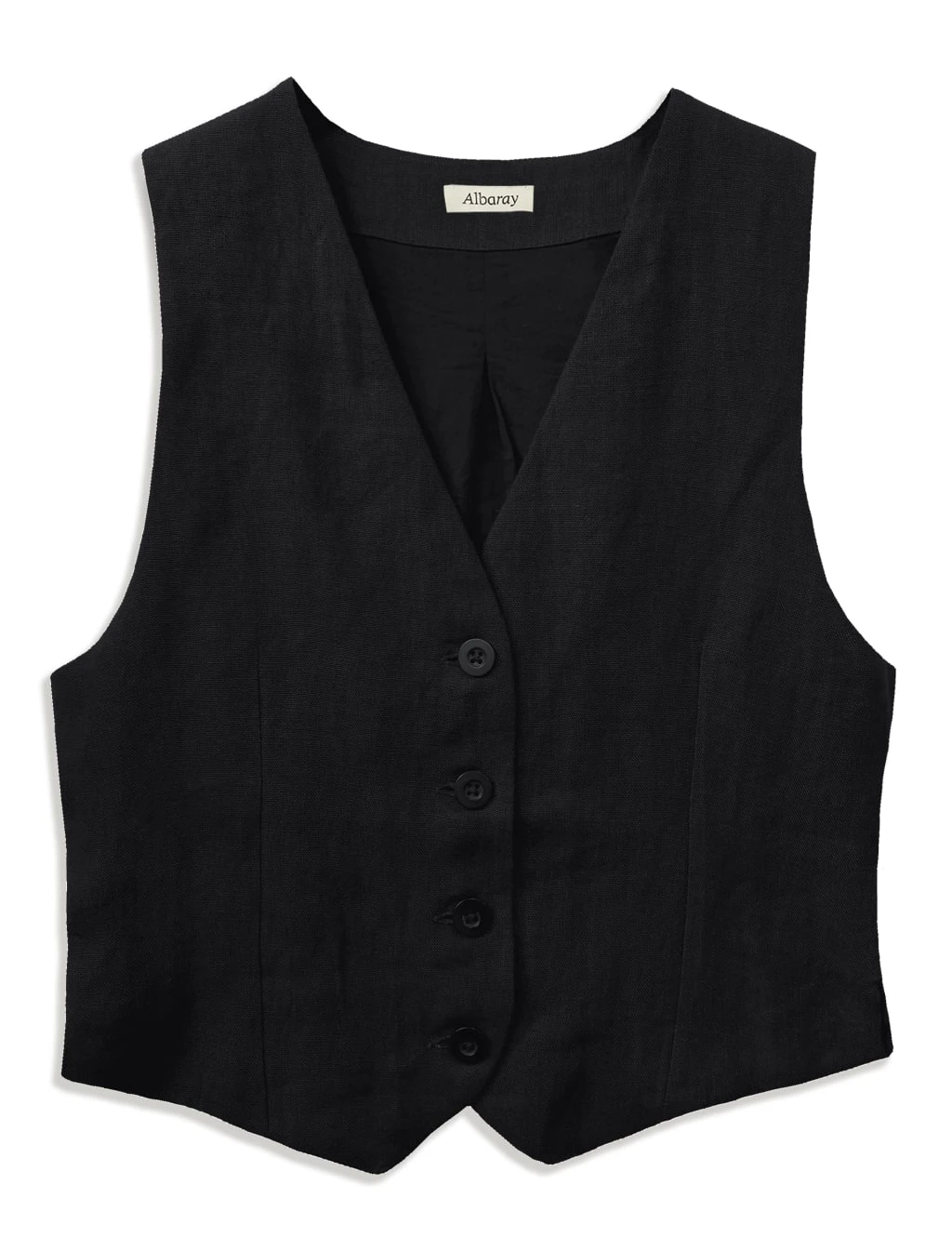 Add a sleek, tailored touch to your warm weather looks with this Albaray waistcoat. The sleeveless style is made to a regular fit from breezy pure linen with an elegant v-neckline. A single breasted button-through front ensures a timeless finish.