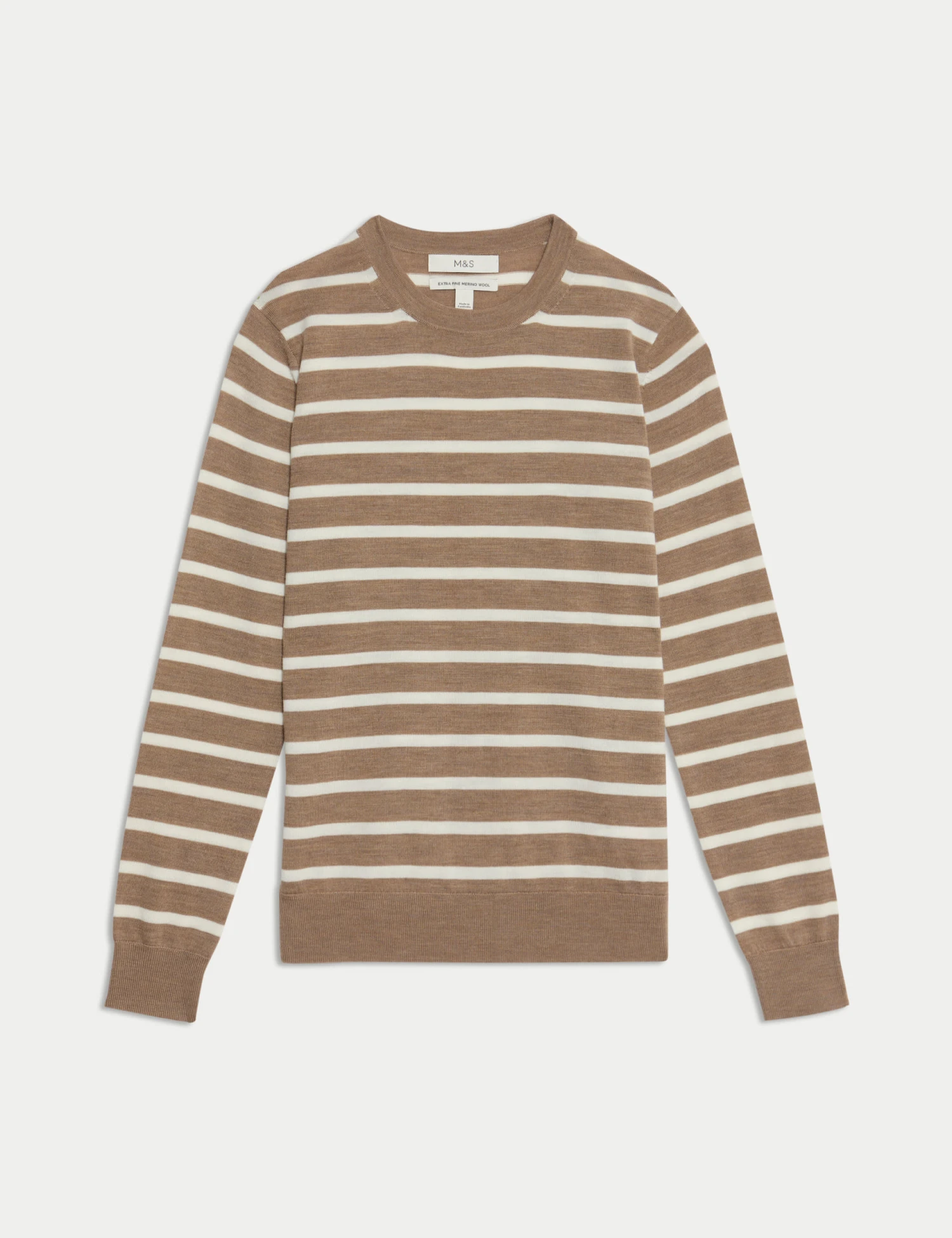 This pure merino wool jumper is a versatile and ultra-soft piece for your knitwear collection. It’s designed in a regular fit, with a neat crew neck and ribbed trims. The timeless striped pattern means it can be worn for both smart and casual occasions.M&S Collection: easy-to-wear wardrobe staples that combine classic and contemporary styles.