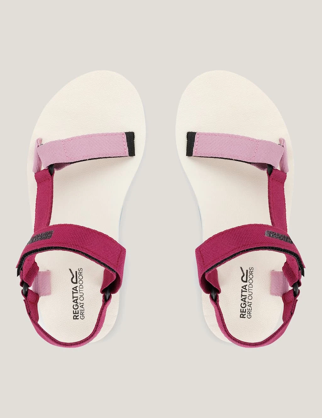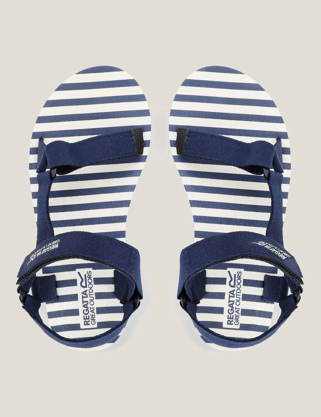 Comfy and stylish, these sandals from Regatta will become your new go-to for sunny days. The open-toed upper is crafted with durable nylon mesh webbing and features a water-friendly cushioned EVA footbed. The adjustable riptape straps offer easy on and off, and have two points of adjustment for a secure and personalised feel.