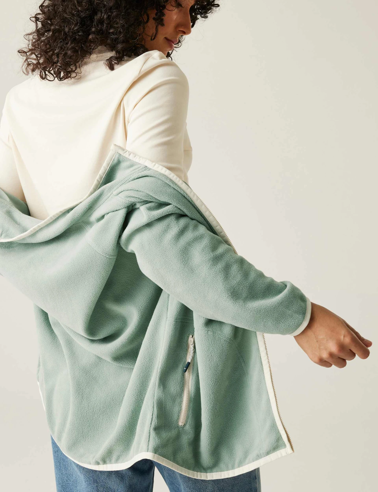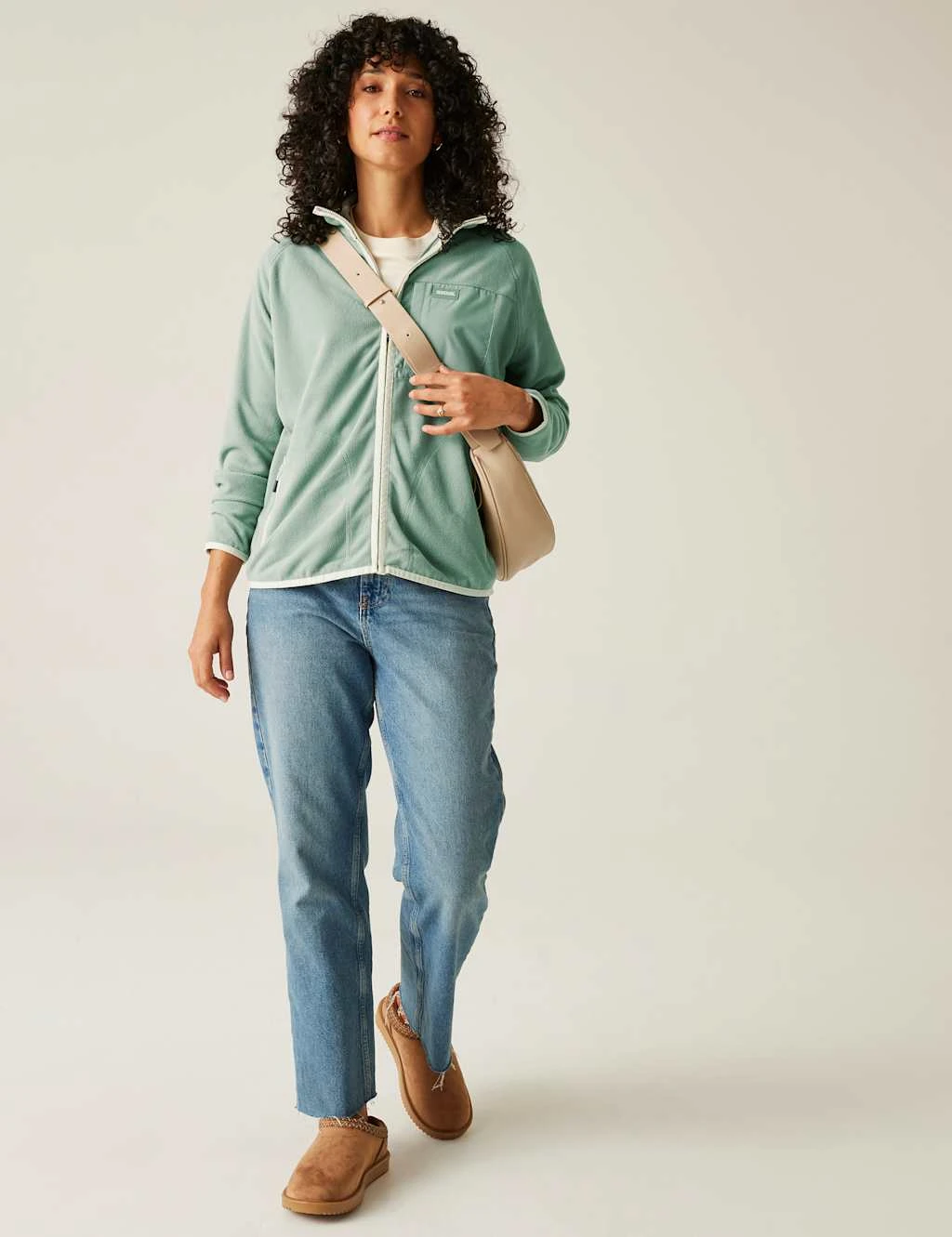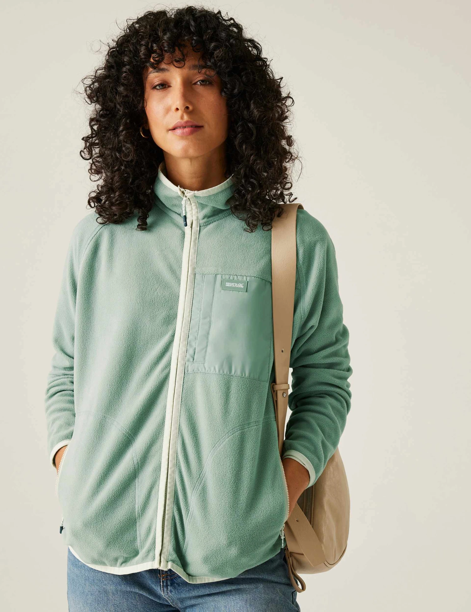 The Lilana fleece from Regatta makes a snug extra layer for outdoor adventures. It’s made in a comfy regular fit, with a funnel neckline for added draughtproofing, plus elastic at the wrists and hem. Zipped pockets provide secure storage. This piece fastens with a front zip and features contrast trims for a stylish finish.